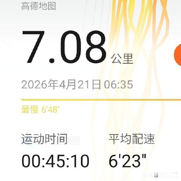 今晨跑7公里,平均配速6'23'',应属于养生跑吧?至于手表显示的心率,暂且不管。