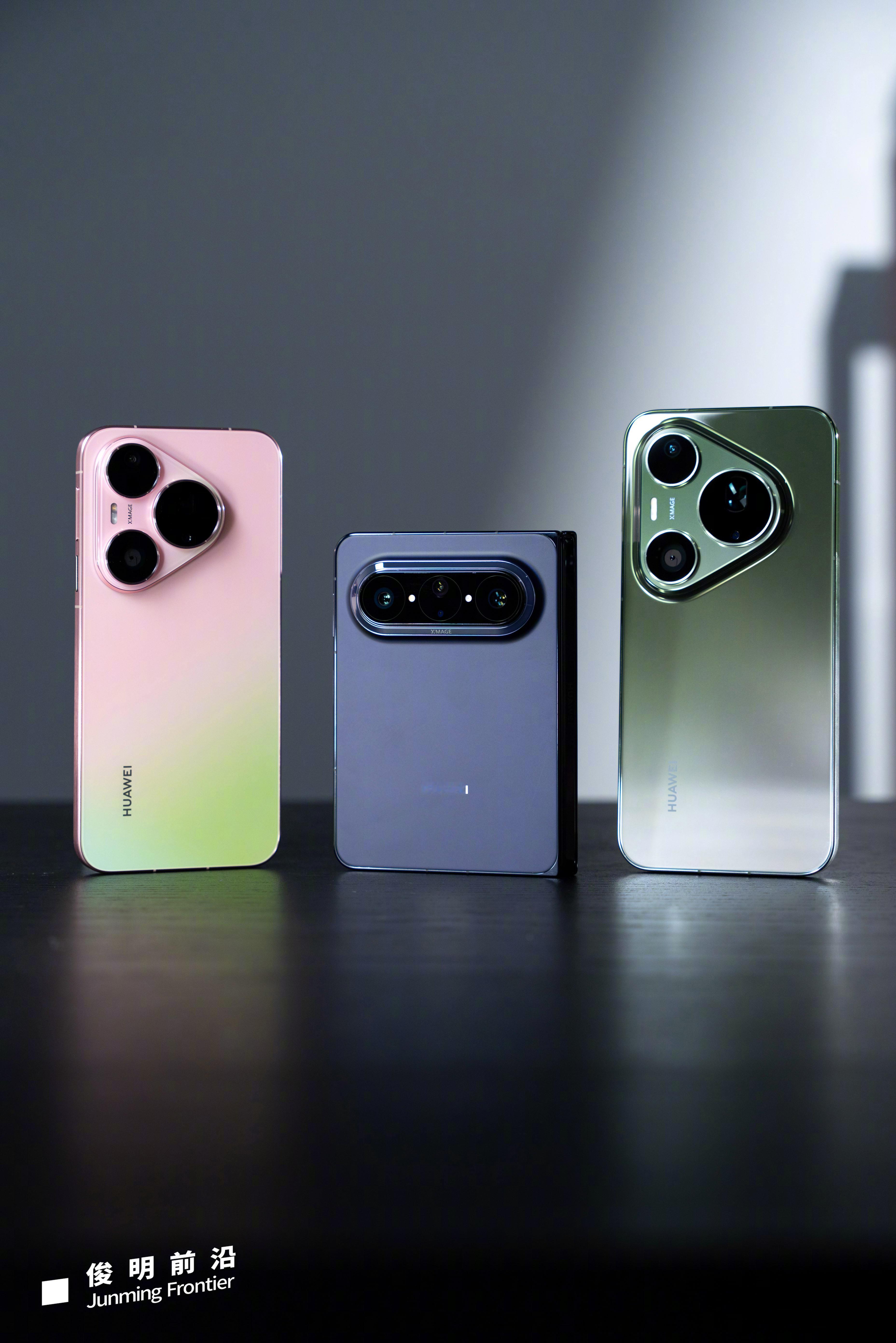 昨天到手,先发几张图。这次拿到的是华为Pura 90 Pro 粉红芭乐、Pura 90 Pro Max 翡翠湖,还有 Pura X Max 幻夜黑。