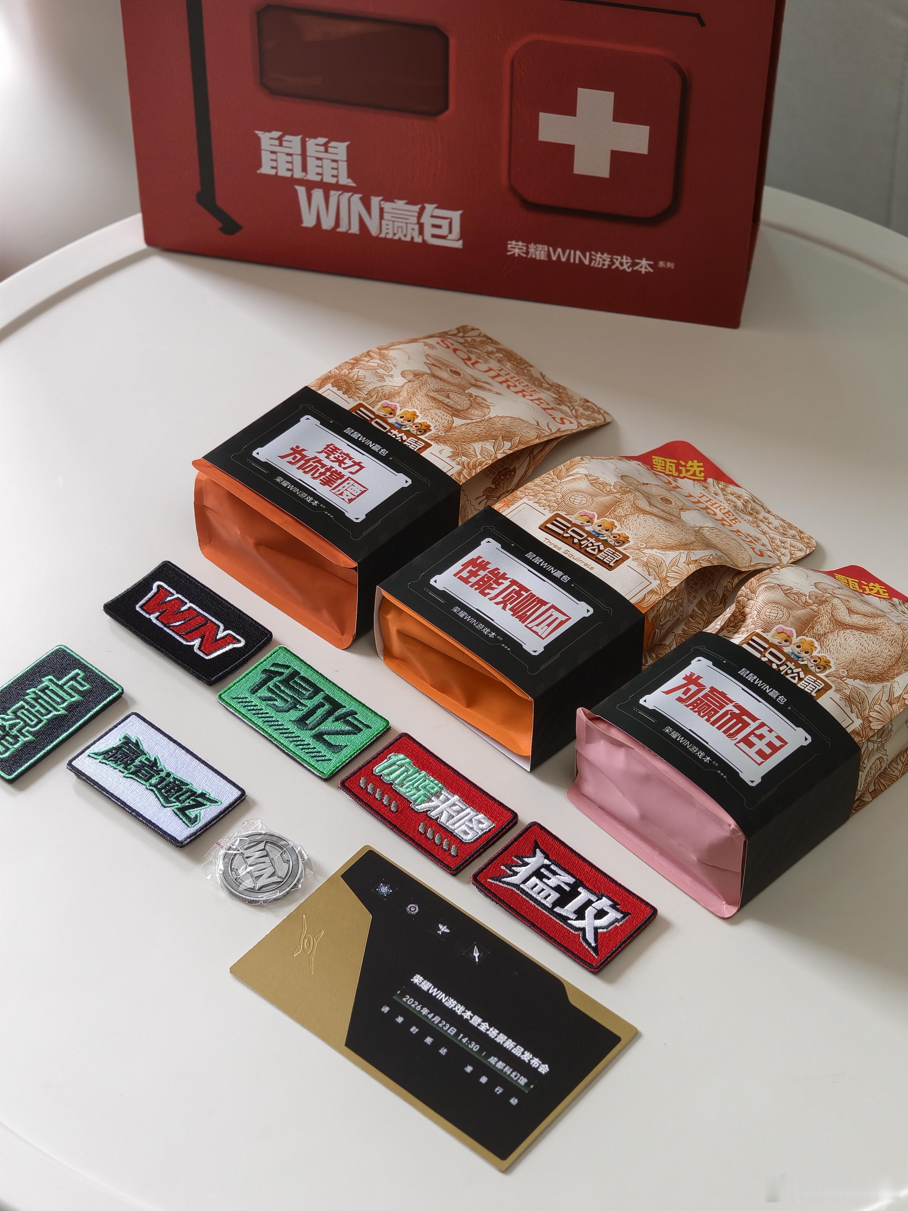荣耀邀请函真能整活儿!收到个超实在的“大红包”,里面塞满了梗:邀请函是洲里洲气风,还配了WIN纪念币和逗趣魔术贴。连零食包都做成急救包样式,腰果是给你撑腰,瓜子让你顶呱呱,花生带你赢到底。