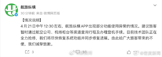 【#航旅纵横崩了旅客发声航旅纵横回应崩了# #航旅纵横崩了#