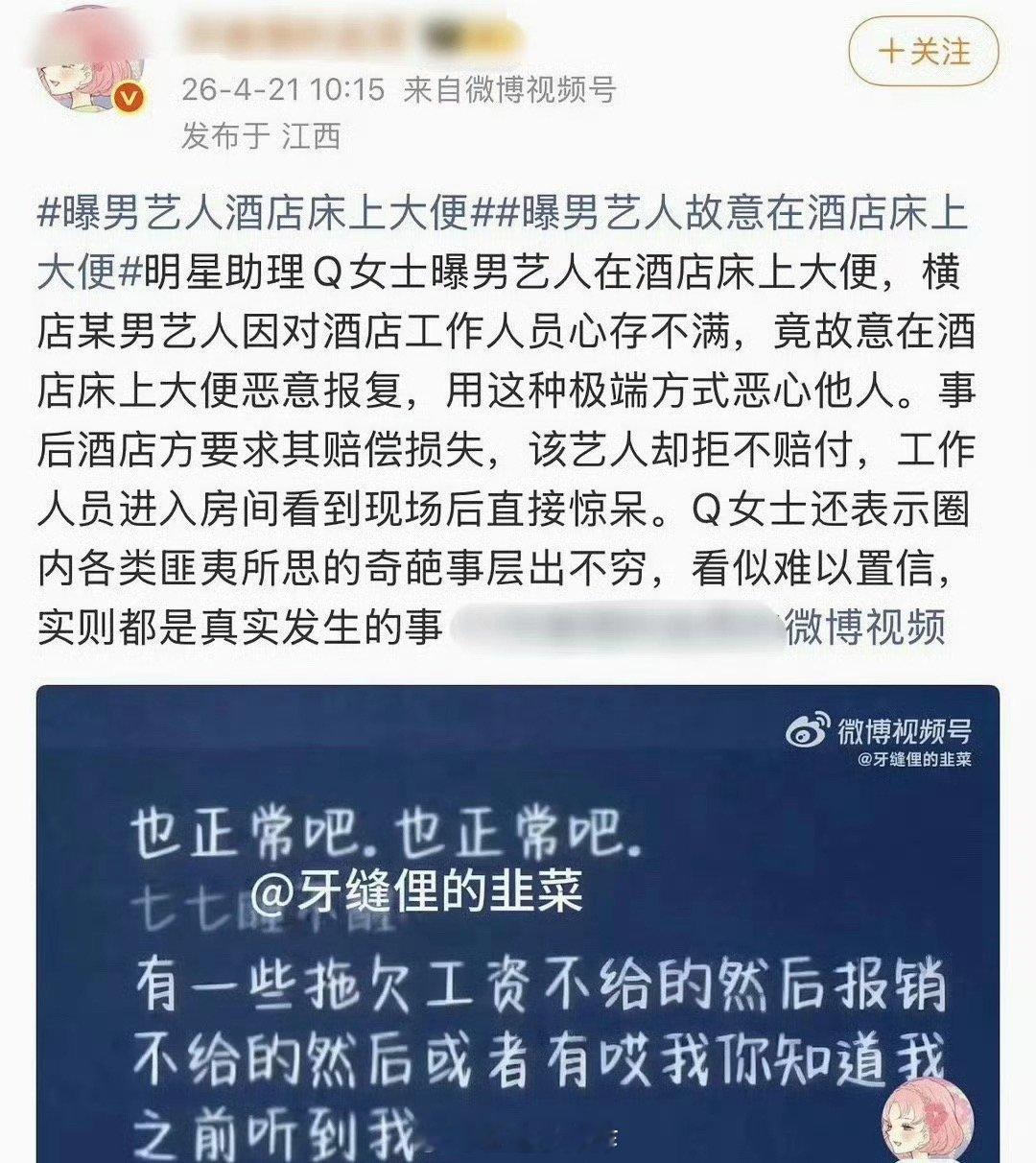 内娱男艺人连shi都兜不住了吗曝男艺人酒店床上大便