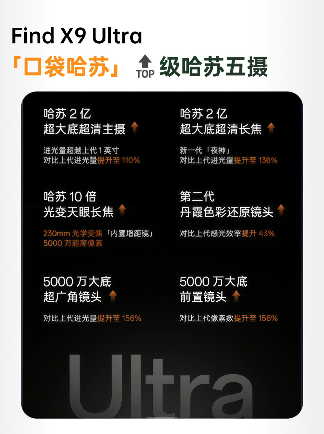 影像系统全面升级!主摄和长焦都用上了哈苏2亿像素,但最惊艳的升级是那颗10倍光变天眼长焦,10X「内置增距镜级」光变,支持20倍「光学品质变焦」与「120倍数码变焦」,演唱会坐最后一排,也能把舞台上的表情,清晰地“抓”回来!