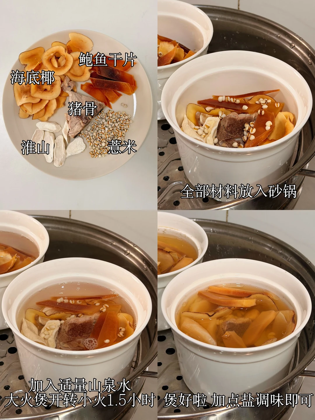 🍲食材:鲍鱼干、海底椰、薏米、淮山、猪骨