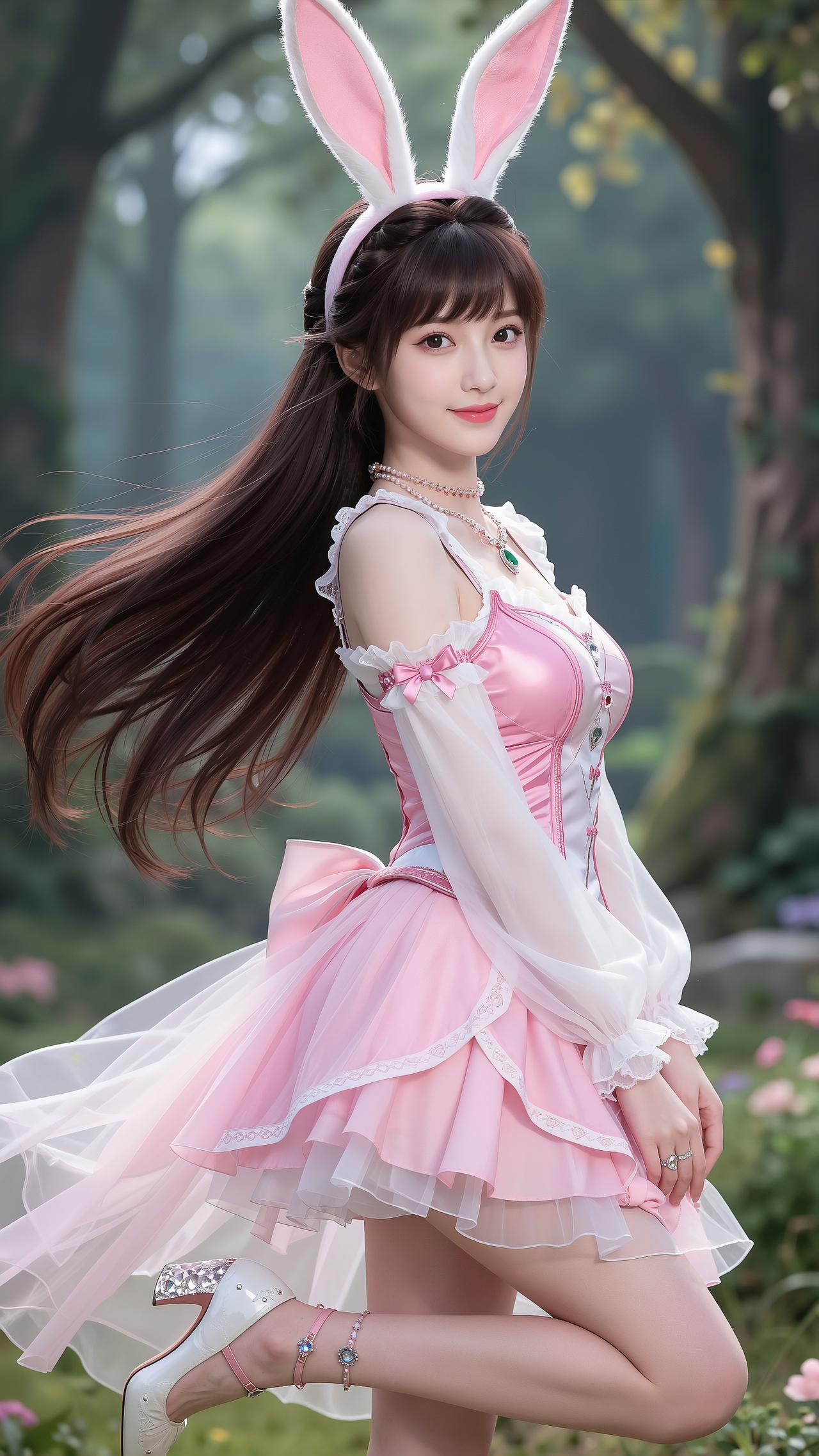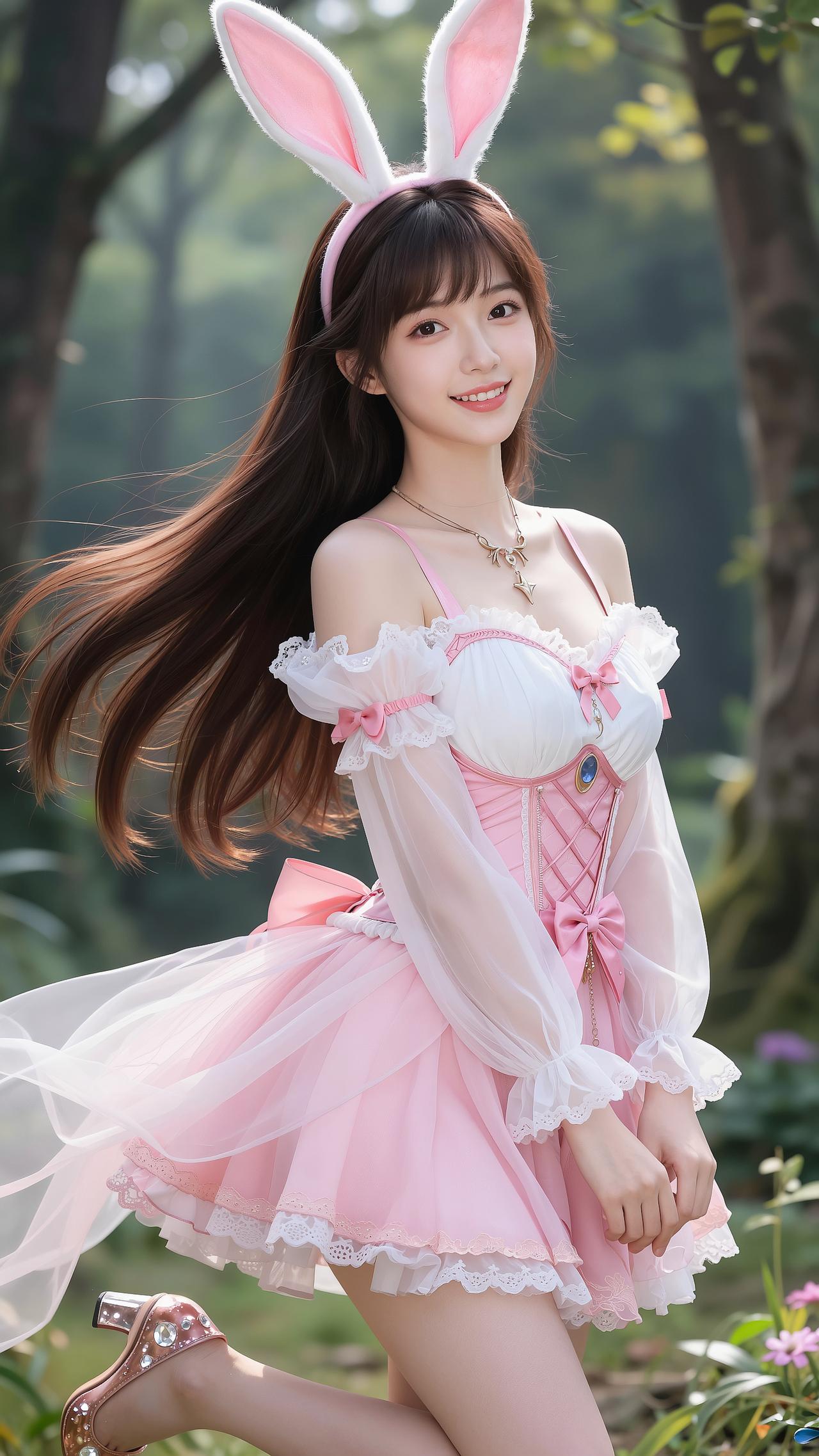 森林里的兔系甜妹,直接把温柔焊在身上✨ 谁能拒绝从森林里跑出来的粉色小兔叽!软乎乎的兔耳发箍,粉白相间的洛丽塔小洋裙,蕾丝、蝴蝶结、薄纱层层叠叠,把少女的甜意拉满。长发在风里飞扬,笑容明媚又治愈,仿佛闯入了童话世界,每一帧都像动漫里走出来的画面。 是林间蹦跳的元气小兔,也是藏在心底的温柔浪漫。愿每个女孩都能永远保持这份天真与可爱,做自己世界里的甜美公主💖