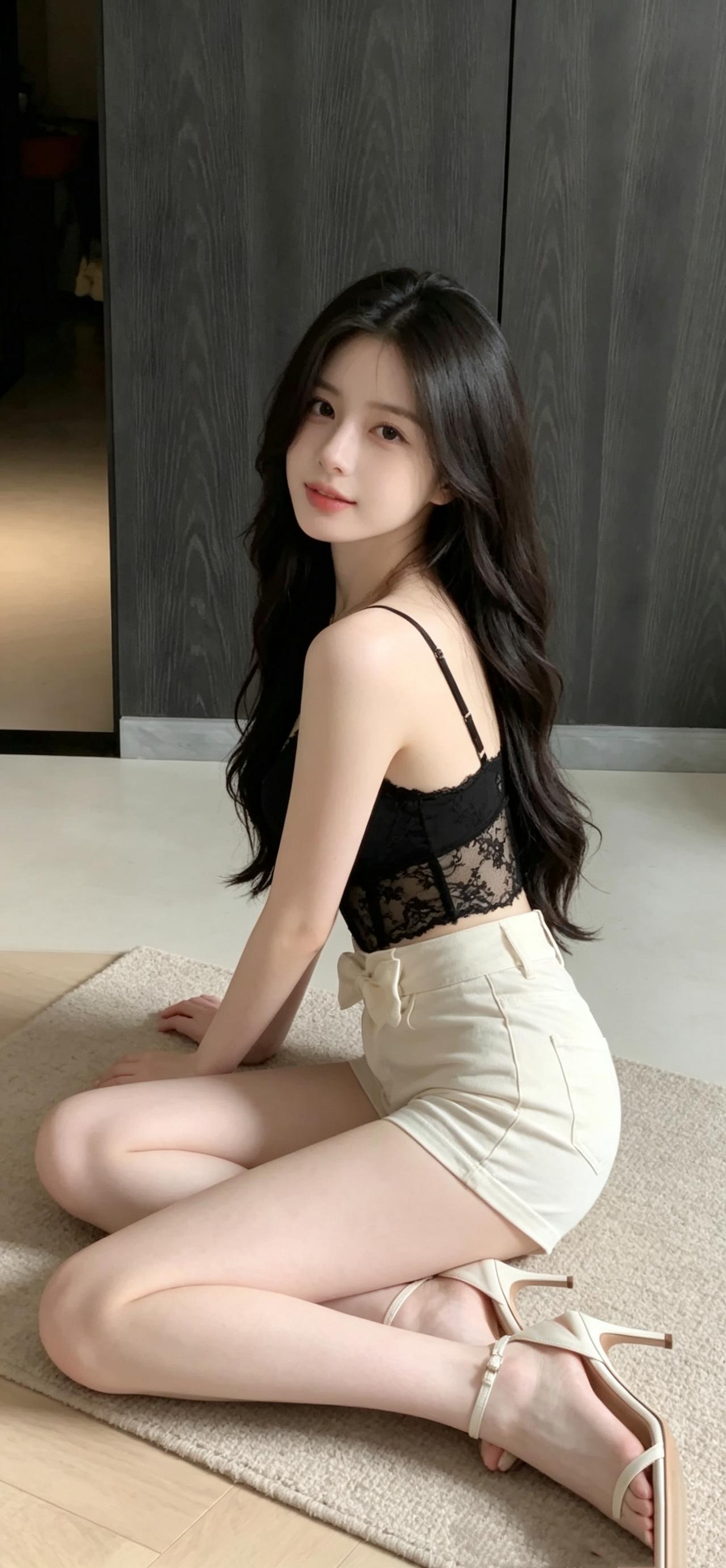 黑蕾丝|纯欲氛围感拉满 暗调室内作衬,黑色蕾丝吊带自带性感滤镜,透视蕾丝勾勒曼妙曲线,腰间蝴蝶结增添精致感。坐姿慵懒随性,一字带高跟凉鞋拉长腿部线条,将纯欲与性感拿捏得恰到好处,氛围感拉满。 美女分享 纯欲天花板 辣妹穿搭