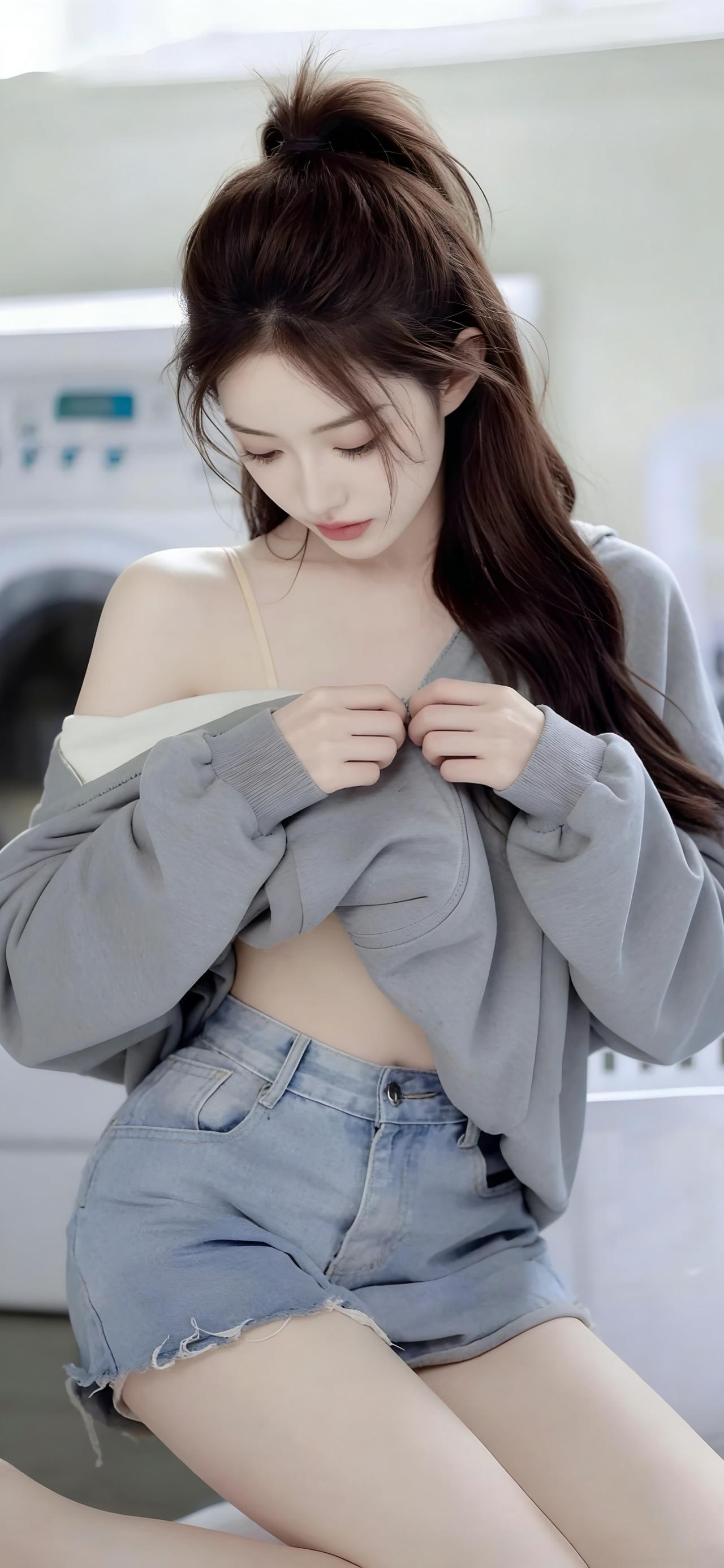 松弛感辣妹穿搭|卫衣+牛仔短裤,夏日慵懒氛围感拉满 这组居家随拍,将松弛感与