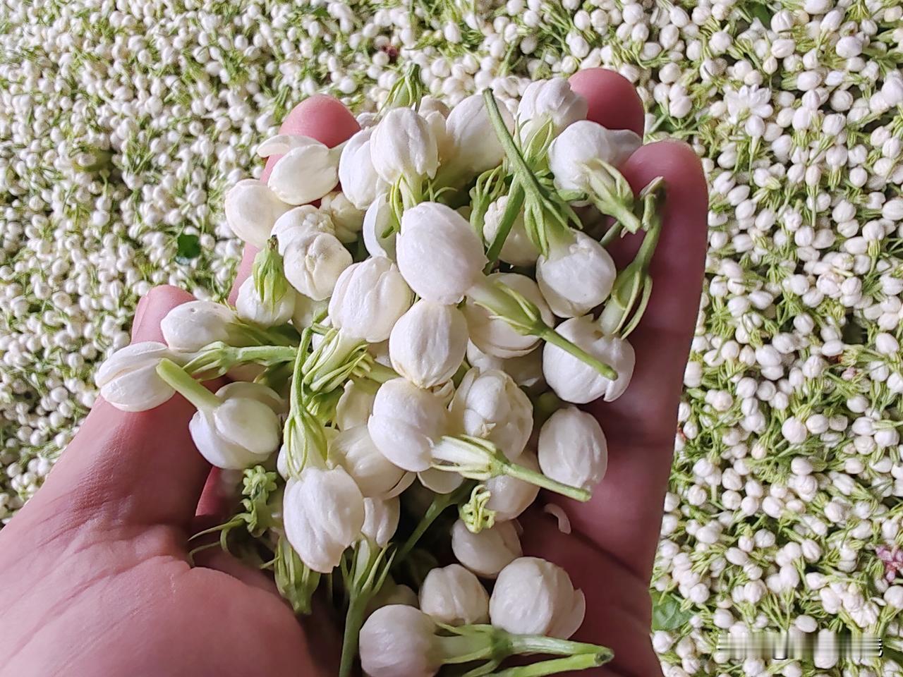 今天的太阳不是很大,不过温度还是比较高的,很利于茉莉花的生长,今天花的质量还不错,个头大,饱满,香度还可以。