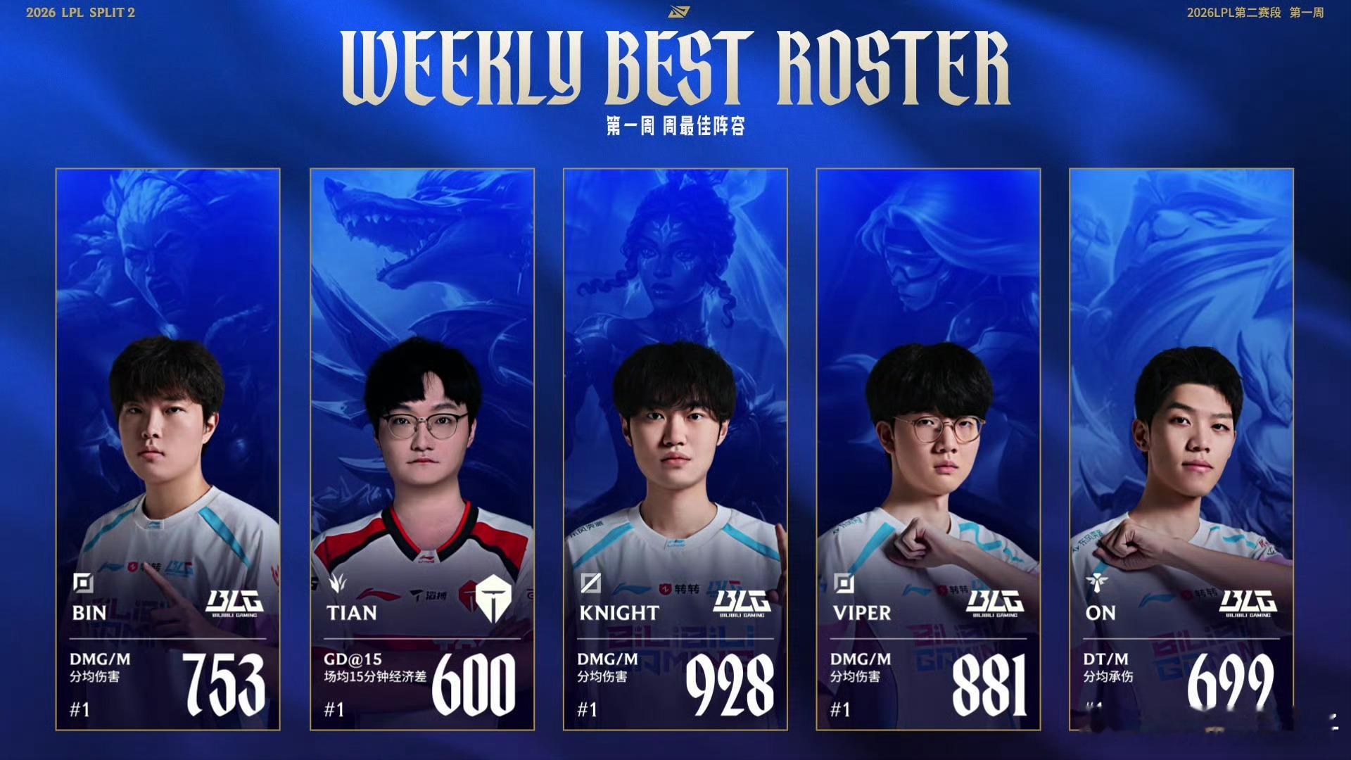官方公布第二赛段首周最佳阵容投票详情:Bin/ON全票当选位置最佳LPL第二赛段