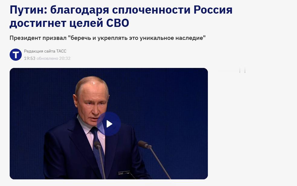 从当前局势分析,普京此番表态具有明确的现实指向。此前俄国防部通报称过去24小时乌军损失约1050人,中央集团军解放了顿涅茨克地区的格里希诺村。在军事行动持续推进、西方对乌援助尚未减弱的背景下,普京将“民族团结”提升至国家战略高度,意在凝聚内部共识、巩固社会韧性,以支撑可能长期化的战场消耗。他强调“个人责任”与“长远视角”,暗示俄方已为持久战做好制度与心理准备。整体来看,俄方正试图将战场上的战术进展转化为政治上的战略稳定,而民族团结不仅是精神号召,更是维持军事行动持续性的现实基础。