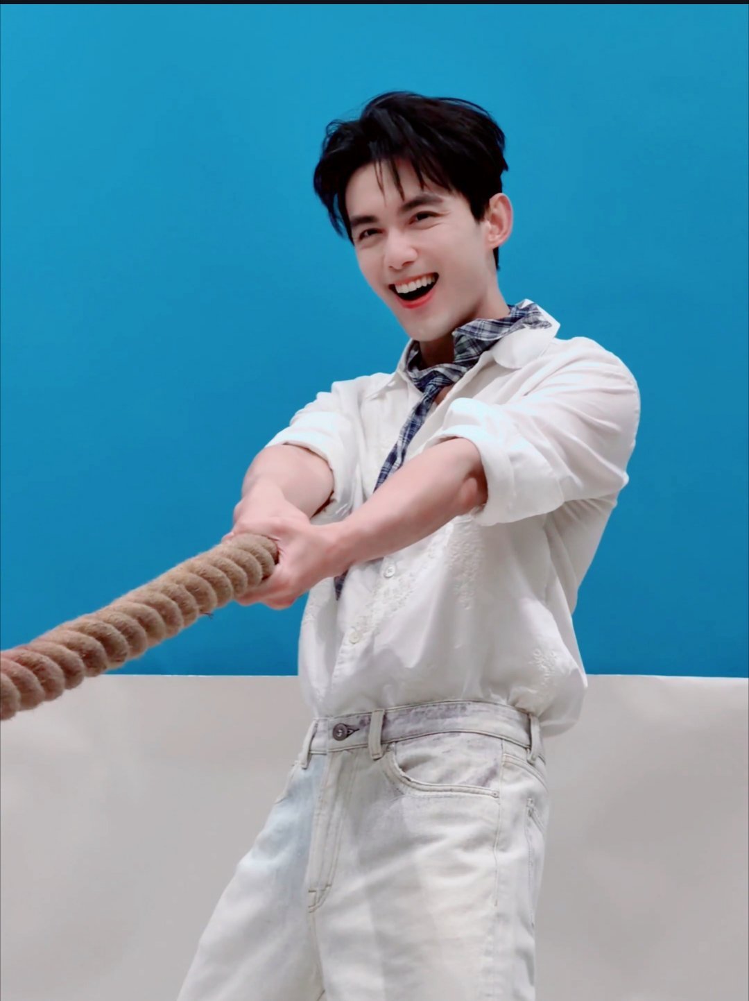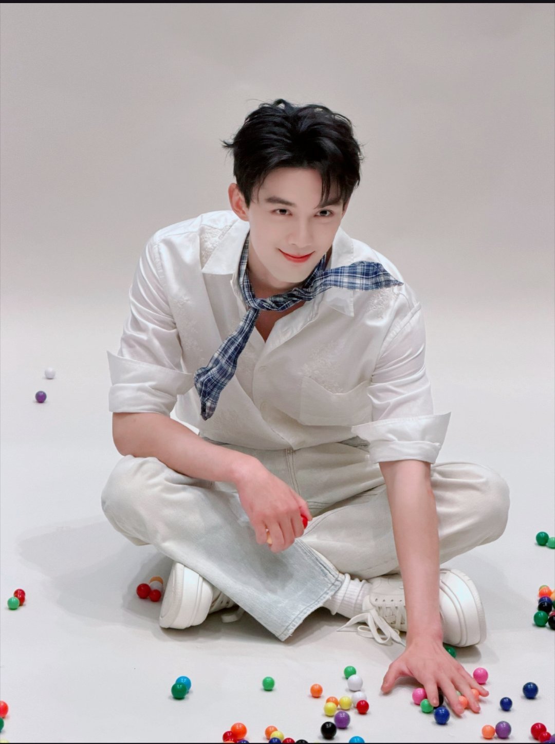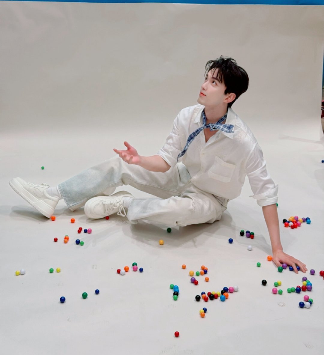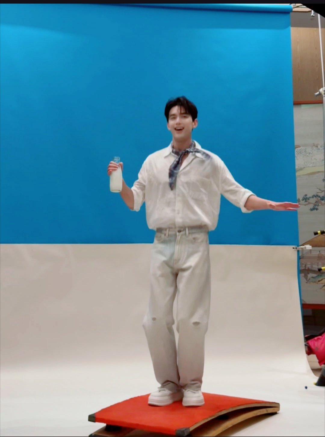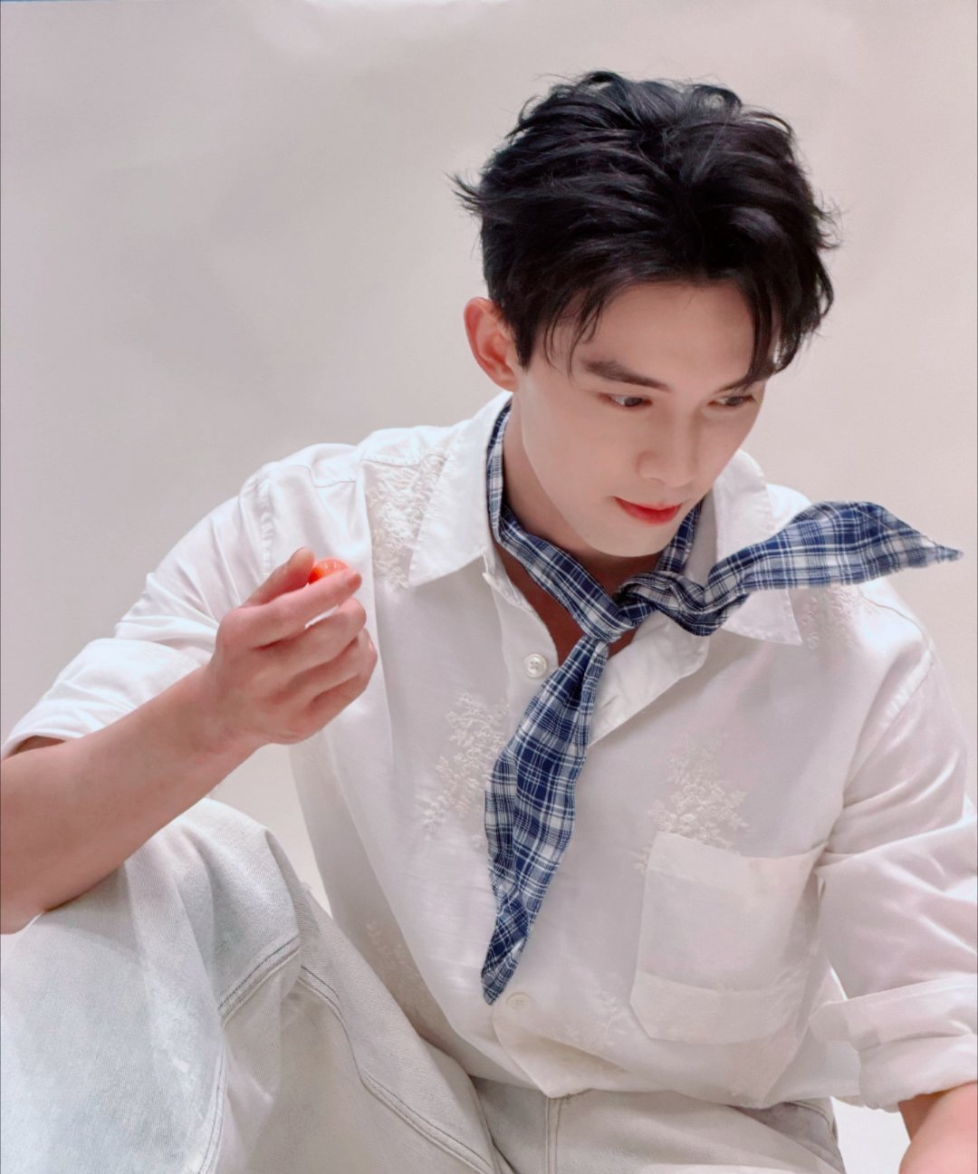 吴磊光明牛奶直播造型——吴磊的小丝巾好特别,支棱起来挺有造型感。