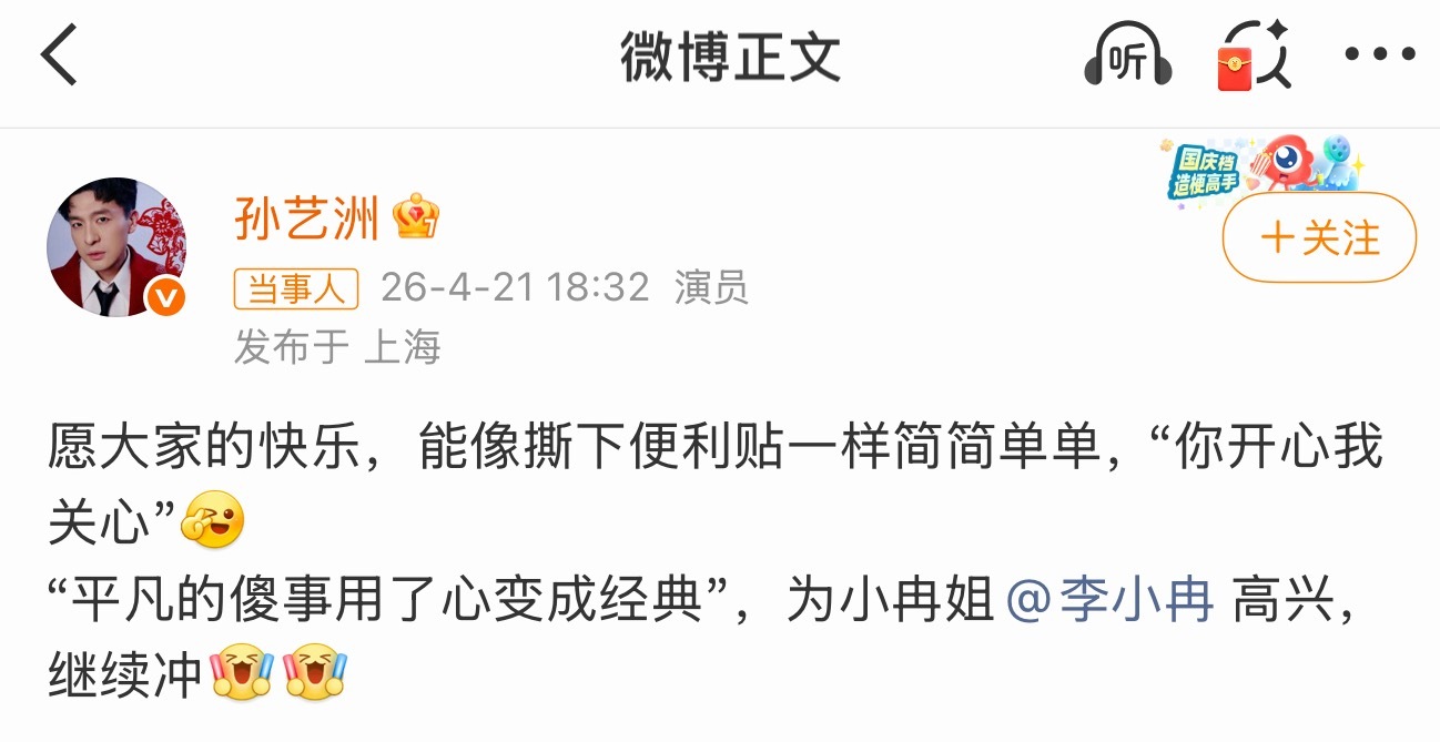 孙艺洲跳了李小冉的心愿便利贴,李小冉回复说好皮的孩子哈哈哈哈…