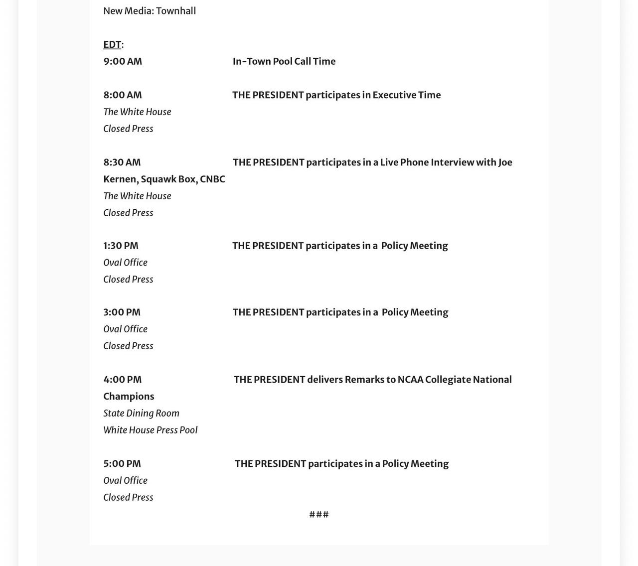 白宫工作安排中,今天没有简报会,也就是说不会对外说明派万斯团队前往巴基斯坦的具体计划。