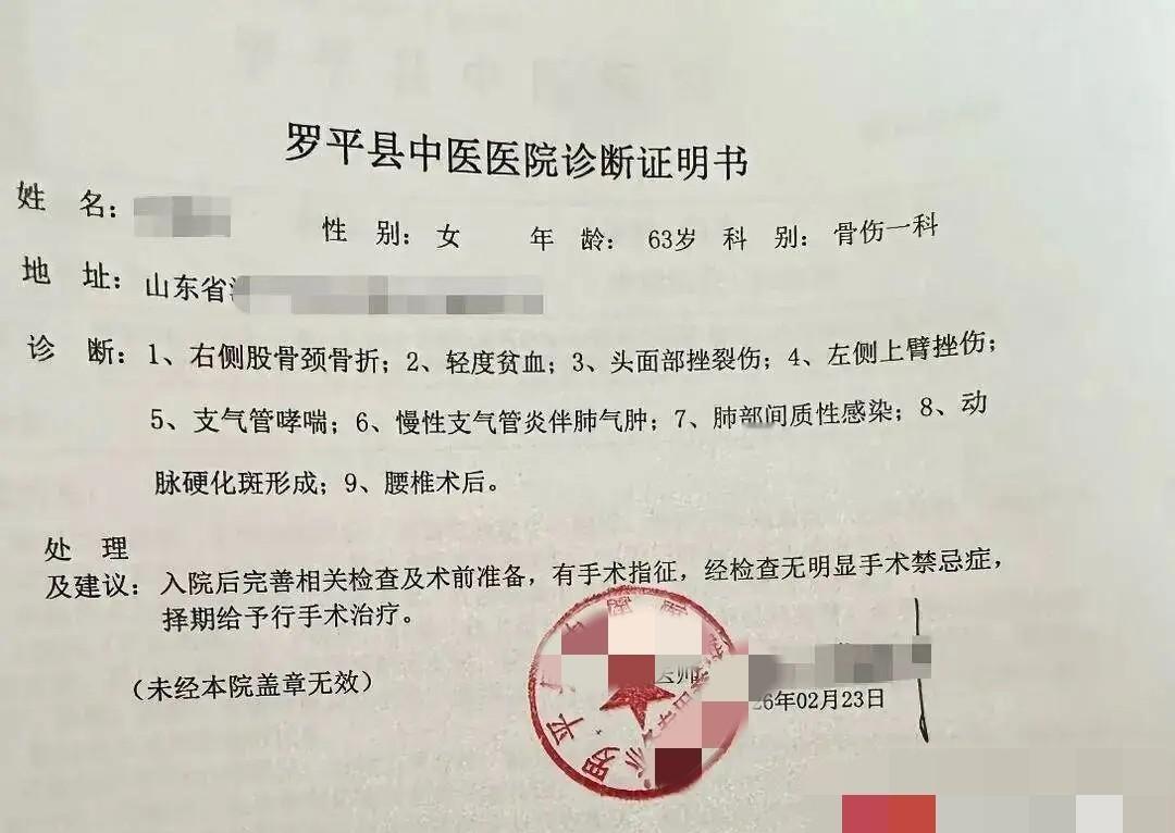 救护车一路呼啸着冲进医院。急诊科医生的诊断书就像一道催命符:右侧股骨颈严重骨折,头部面部多处皮肤撕裂。