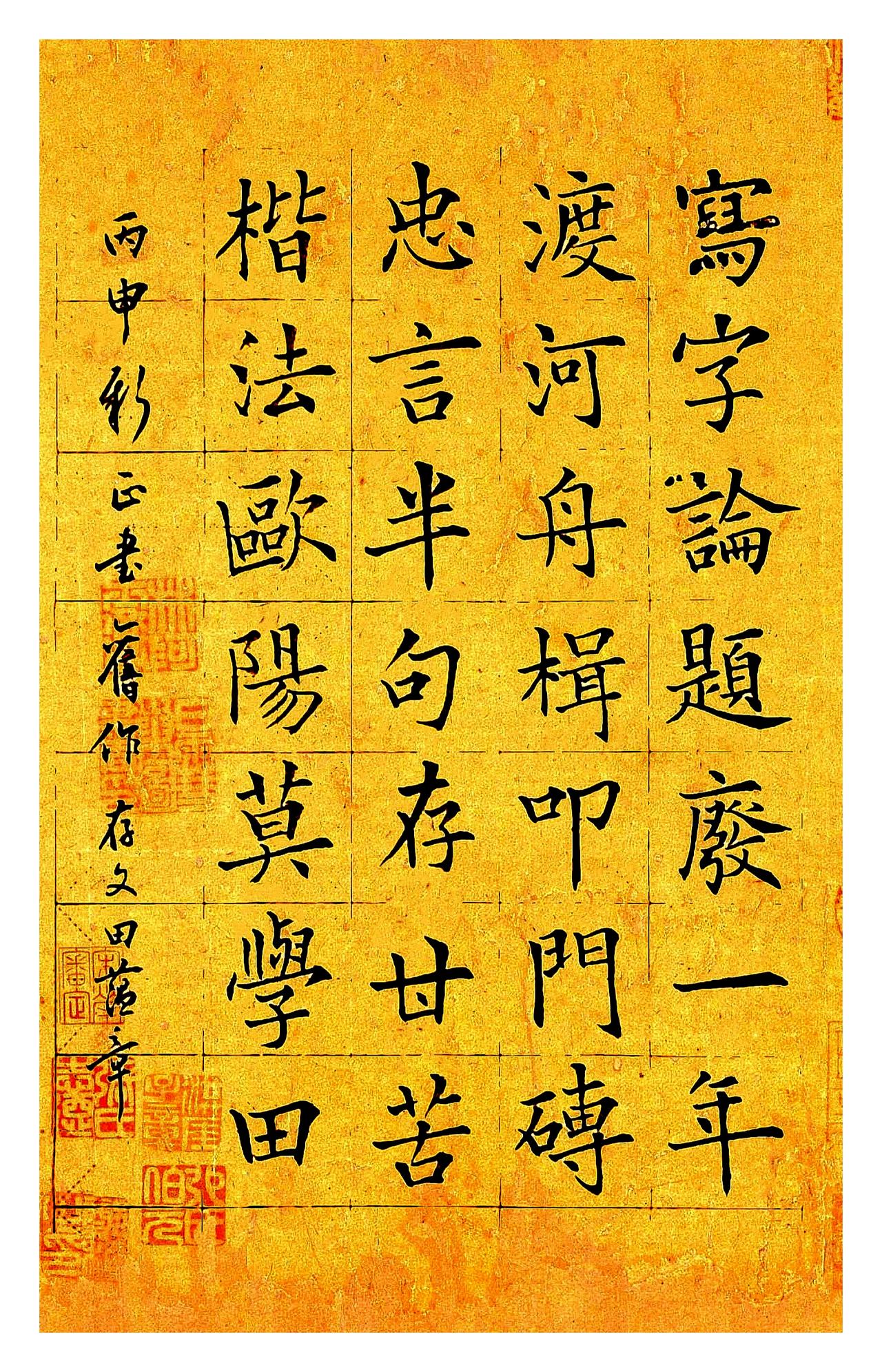 这首自题诗,是田蕴章先生一生书学的注脚:“写字论题废一年,渡河舟楫叩门砖。忠言半句存甘苦,楷法欧阳莫学田。”