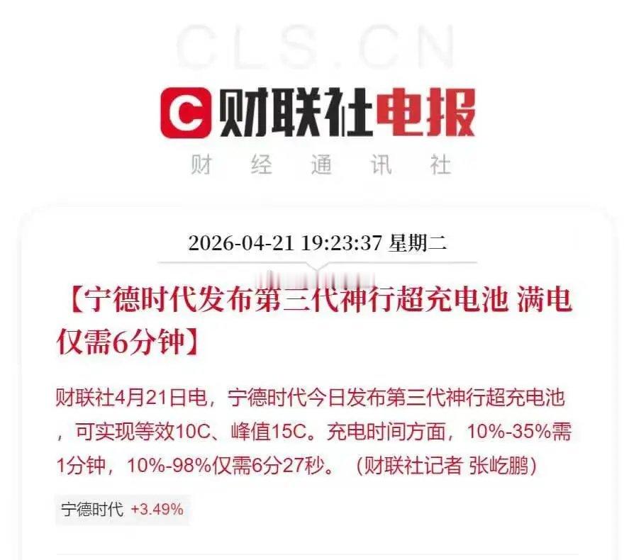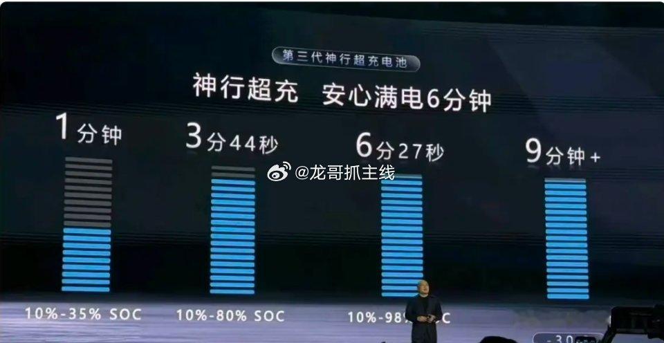 不愧是宁王,3月底,高管还在强调不可为超快充牺牲电池可靠性,转眼间,在今晚就发布了世界上最牛X的闪充技术,10%到98%仅仅需要6分27秒!一下子把迪子的九分钟彻底比下去了,迪王也只能甘拜下风了。这才过了不到一个月,显然,这中间宁王一定取得了前所未有的技术突破,犹如一个修武之人,一夜之间打通任督二脉,神功大成!唯一有点遗憾的就是,没有看到实车跟实桩,对比吉利的神盾闪充,人家起码还有对标车型领克10。