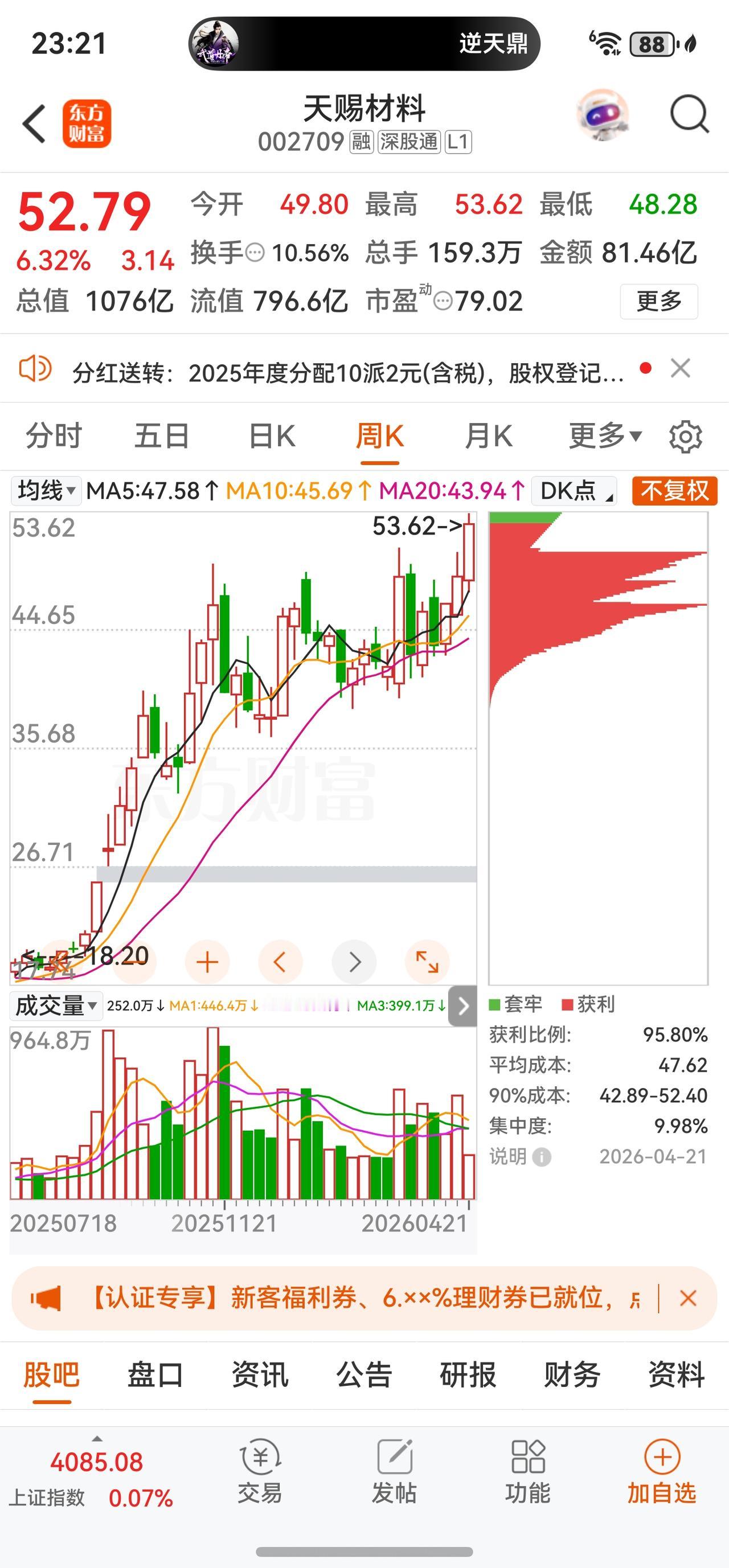 总体来看,天赐材料今日在量价齐升中突破前期震荡区间,短期走势的持续性将高度依赖4月27日一季报的实际业绩表现,建议密切跟踪季报披露前后的股价波动。