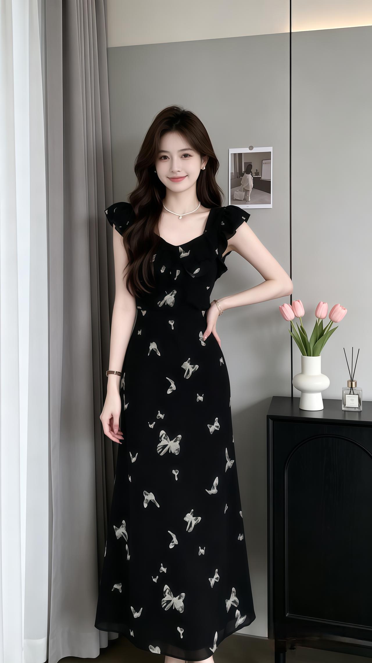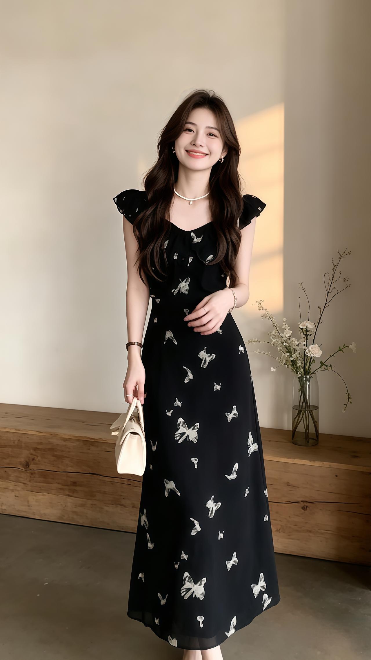 法式碎花小黑裙 连衣裙穿搭气质穿搭夏季穿搭