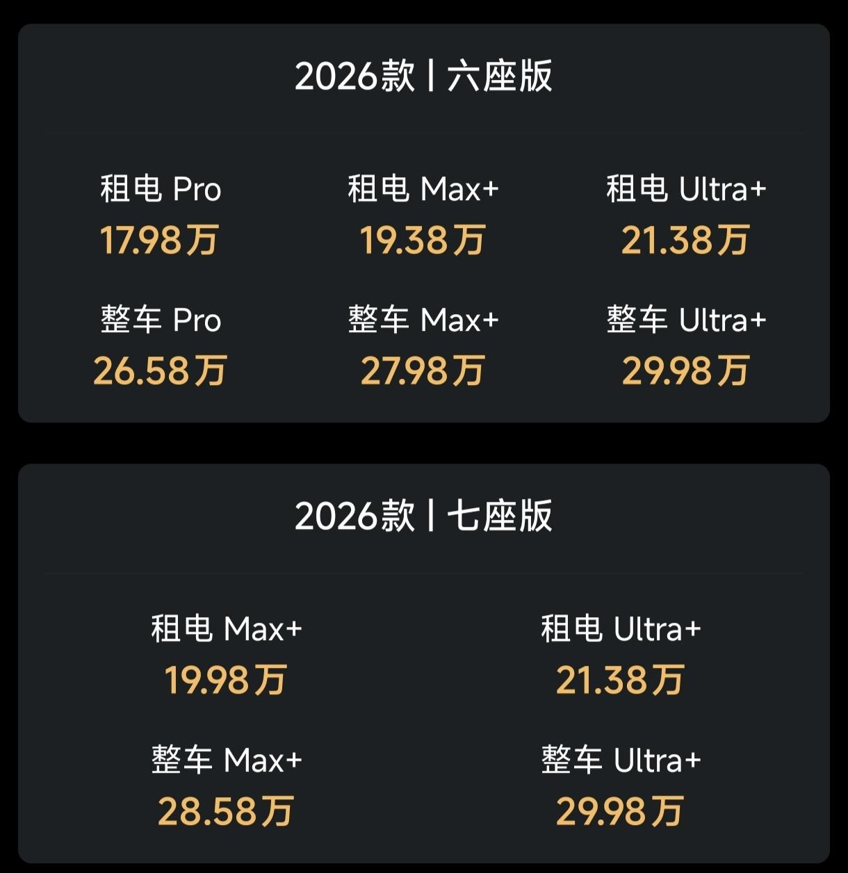 七座版的起步价,比六座版贵2万。