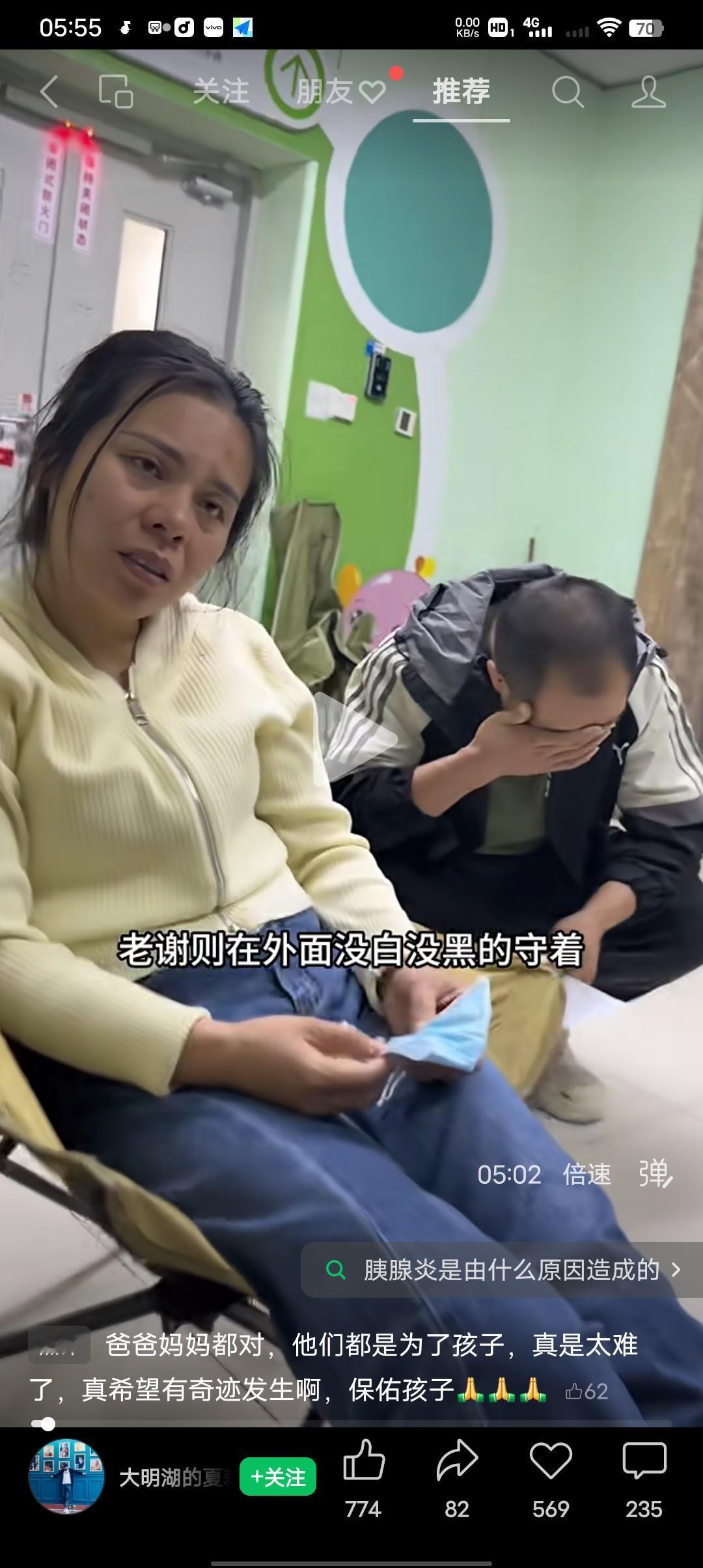 老谢的儿子民丰因为腹部疼痛剧烈被确诊为胰腺炎,孩子已经在ICU住了整整四天了,这四天老谢没黑没白的在外面守着却一面也见不着孩子。