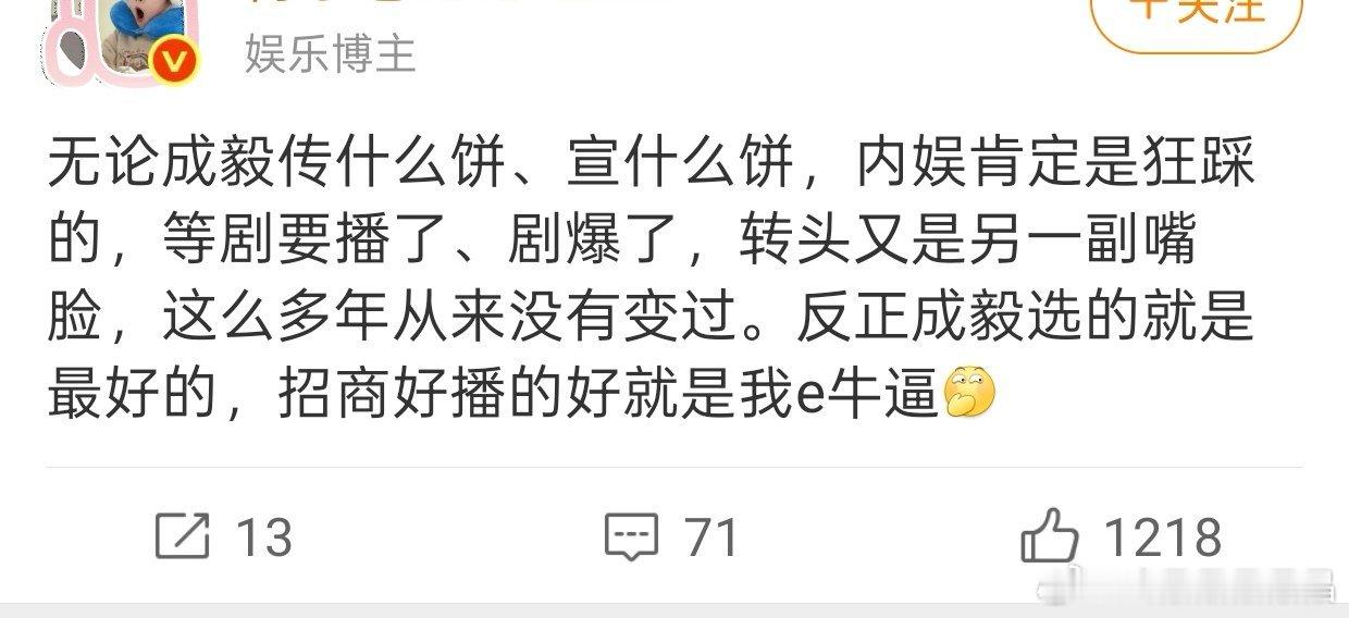 呃家大粉看看右边路人反馈,你家老呃又可以把这部仙侠剧改成大男主搞事业了。你家去年