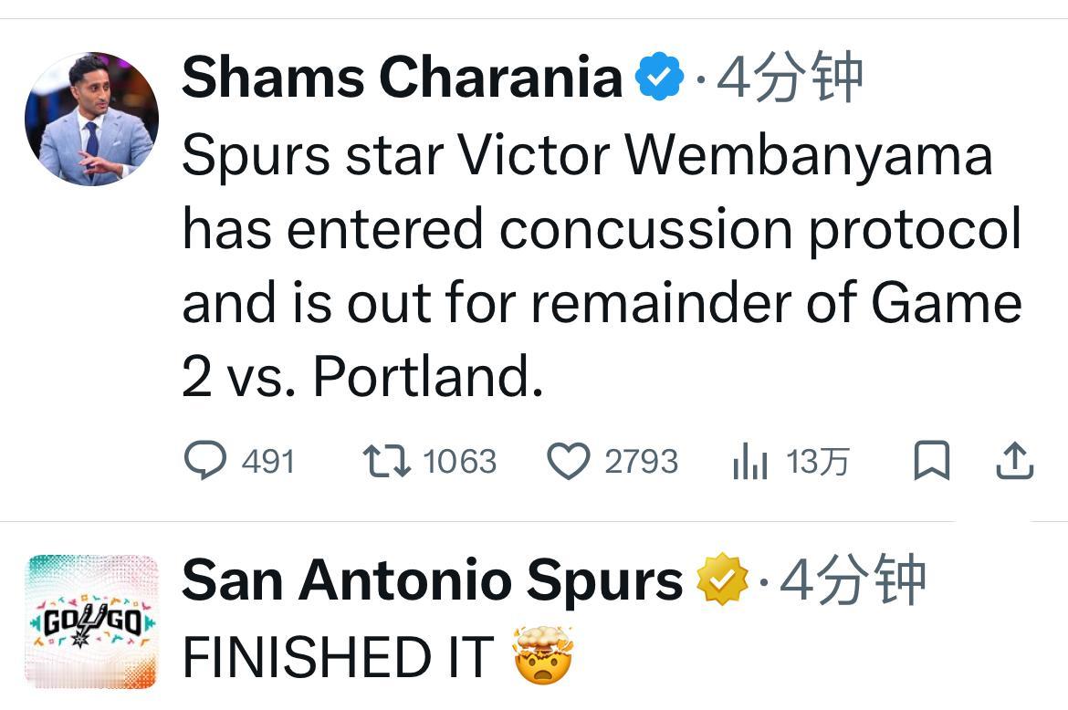 刚刚,文班亚触发脑震荡保护协议,本场比赛不会回归。