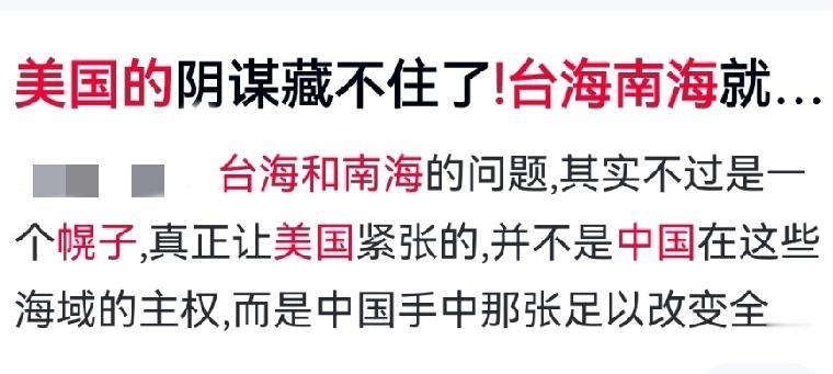 台海南海皆是幌子!美国真正忌惮的,是中国这张王牌