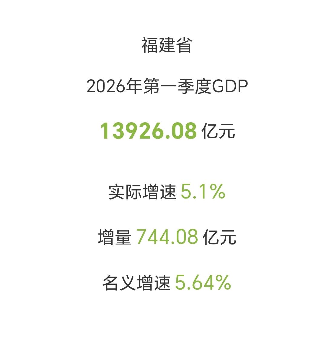 【2026年一季度,福建省GDP超过1.39万亿元,增量超740亿元】