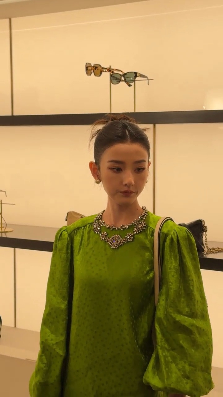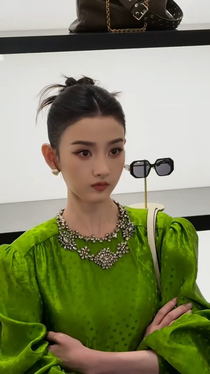 美人就该露出整张脸!!🥰🥰🥰就这个祖儿大光明盘发美晕了宋祖儿绿裙大光明盘发