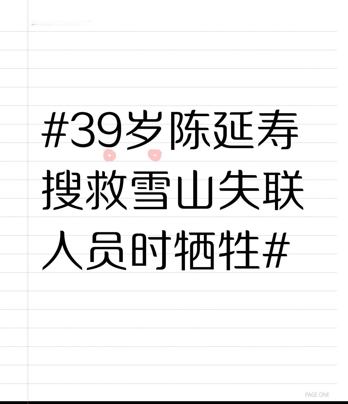 39岁陈延寿搜救雪山失联人员时牺牲 太痛心了!39岁的陈延寿在搜救雪山失联人员时牺牲。他是瑞丽市蓝天救援队副队长,还兼任行动组与装备组组长。自2019年加入救援队,累计志愿服务超5000小时。