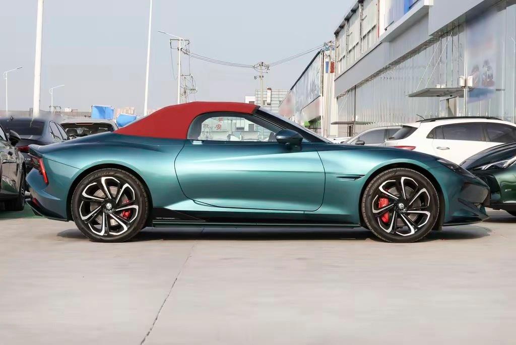 腾势Z跑车,软顶敞篷,姿态看着不错,关键是车体很纤薄,这很不容易,对刀片电池更不