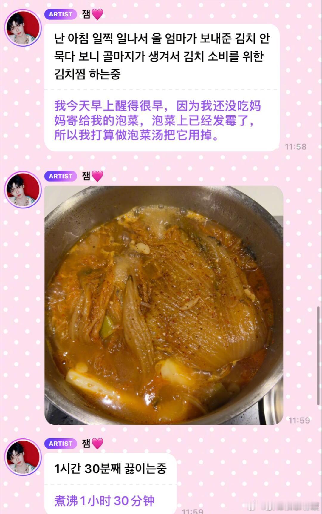 罗渽民用发霉泡菜煮汤 罗渽民在泡泡分享日常,称家里泡菜放太久发霉,为了不浪费便拿来煮了泡菜汤。勤俭节约的心意很暖心,不过变质食材一定要注意安全,健康更重要哦。