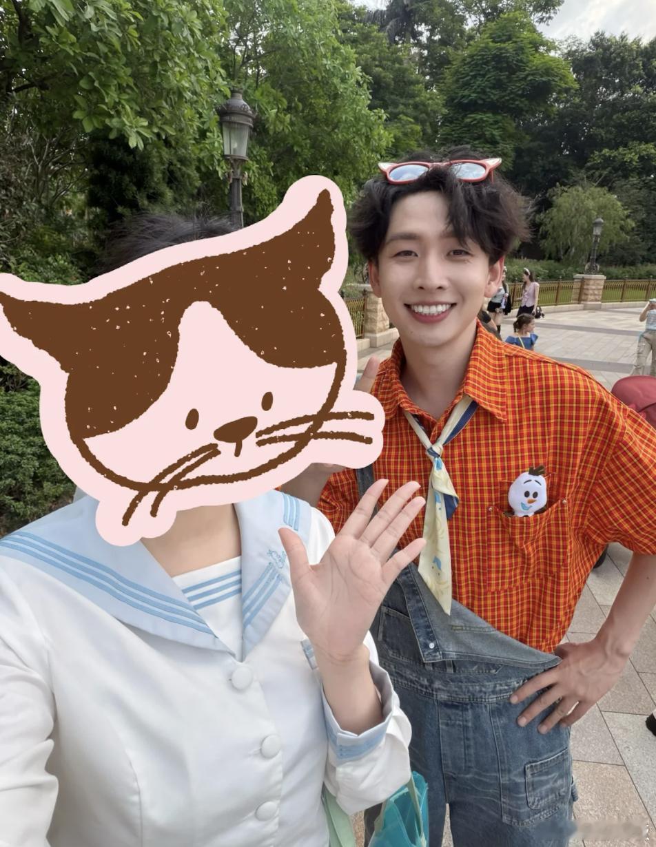 港迪偶遇齐思钧 网友们在香港迪士尼偶遇齐思钧!橙色格纹衬衫搭配元气笑容,本人比镜