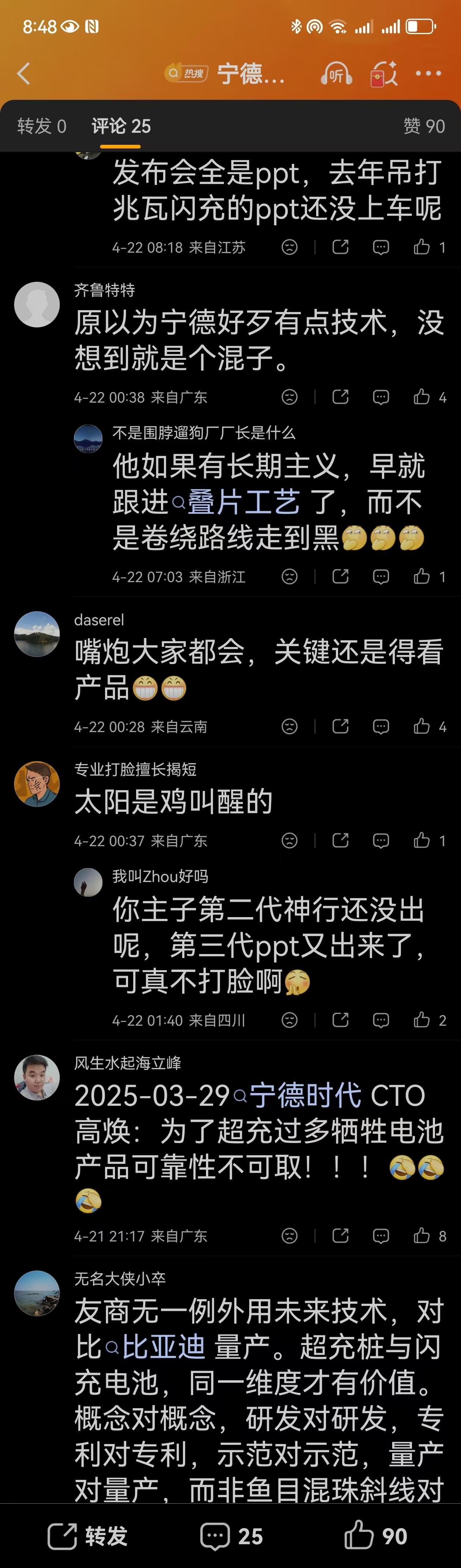 昨晚宁王的闪充发布会,堪称大型翻车现场,号称六分钟就充满,然而不仅全程PPT,而