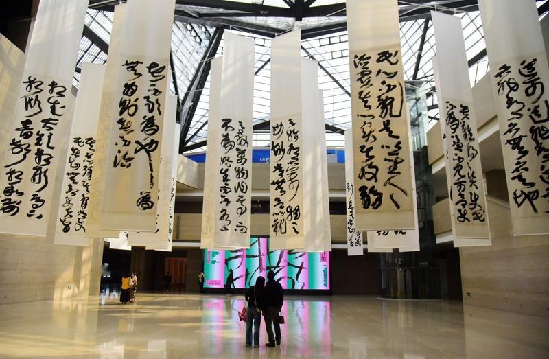 王冬龄的书法争议挺大。有人觉得他是书法大家,他的巨幅草书有独特的艺术风格,线条奔