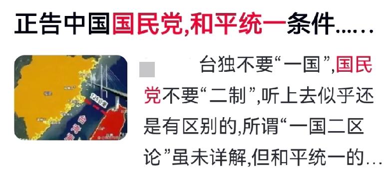 重磅!和平统一三条铁规出炉,国民党必须直面,无模糊空间!