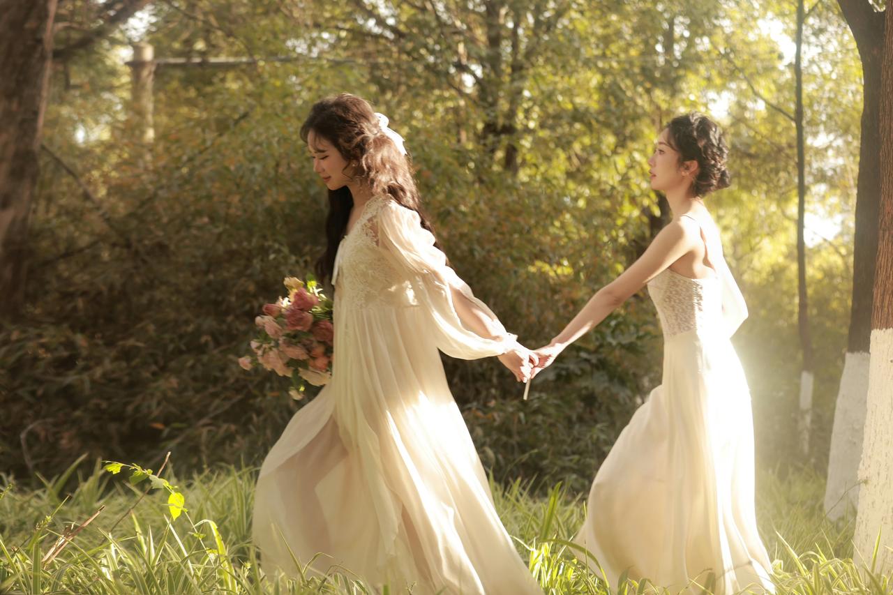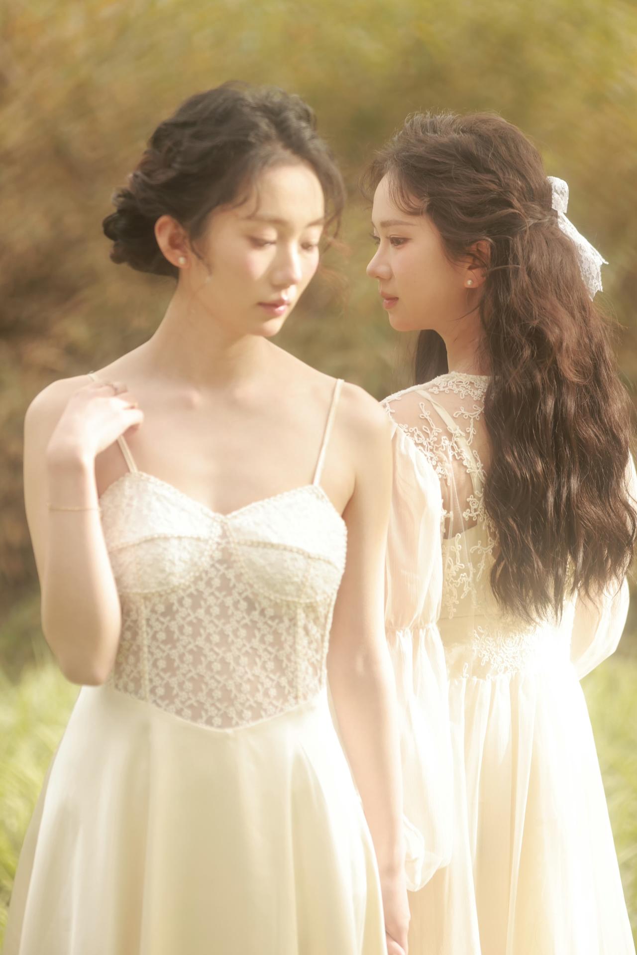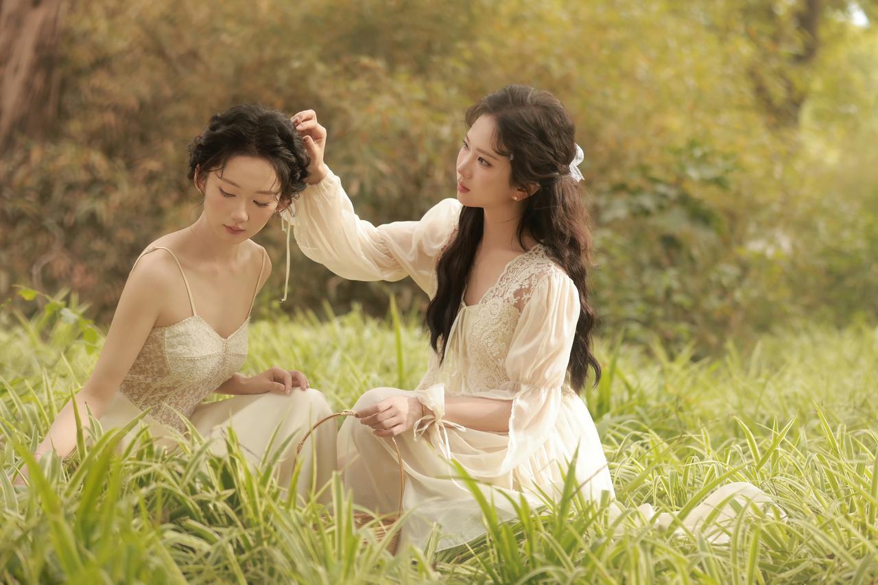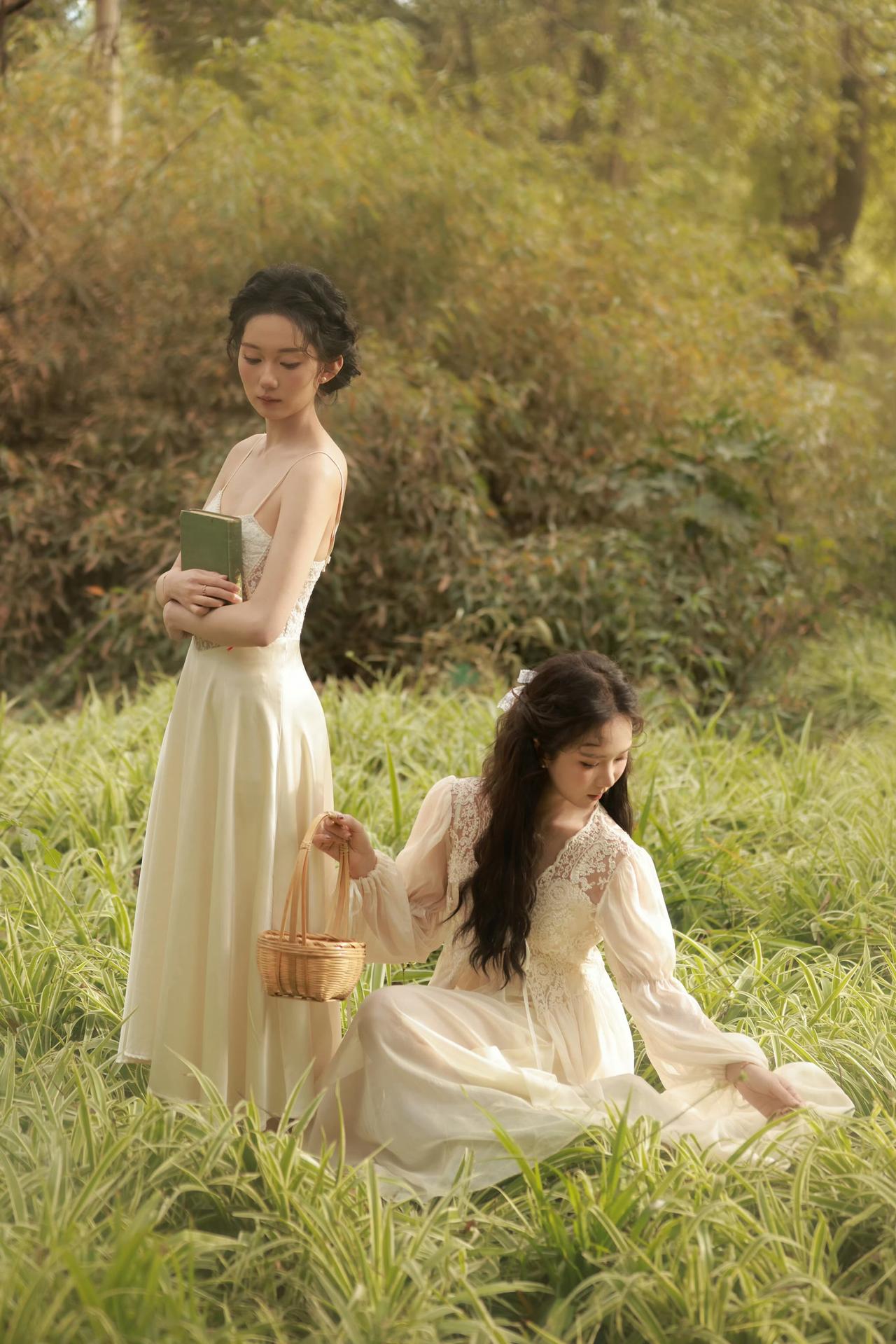 裙摆轻扬,花香漫溢,书页藏着细碎温柔,牵手走过满是柔光的时光。