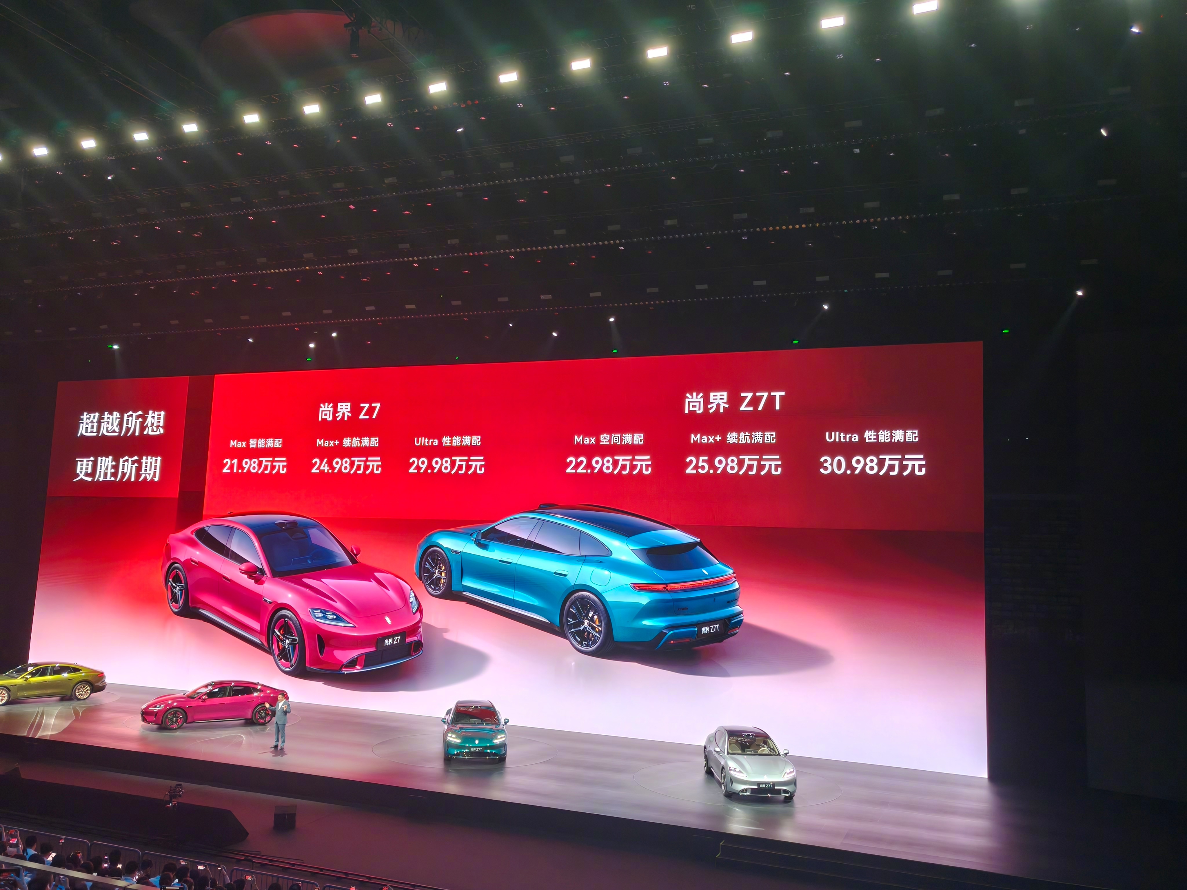 鸿蒙智行发布会尚界Z7正式上市尚界Z7、Z7T潮流登场,21.98万元起,Z7T22.98万元起,首销期可享至高49000元权益,5月下旬正式交付。