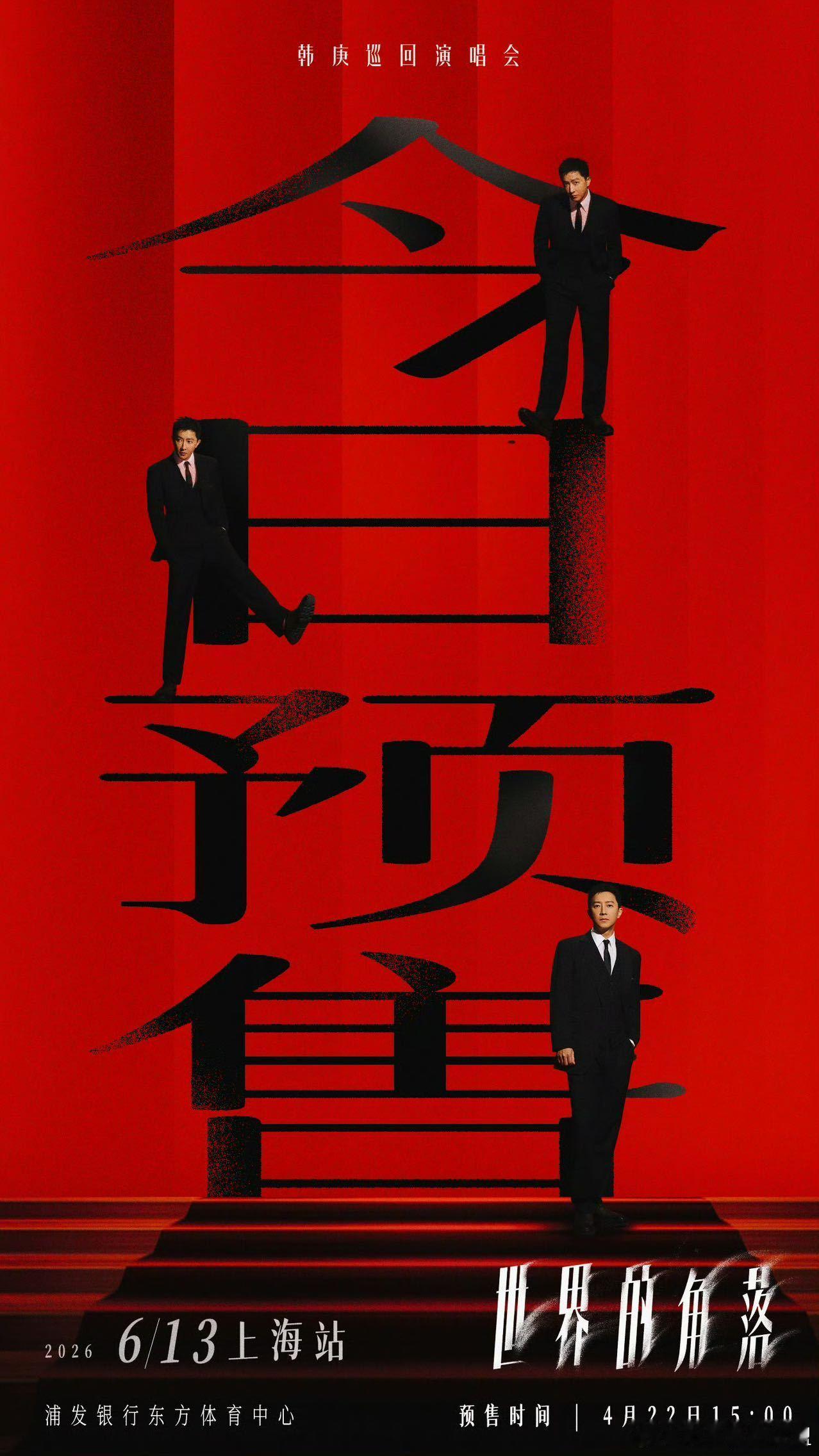 韩庚上海站手速没跟上心跳 有没有抢到的姐妹!上海站开票即秒没,气场丝毫不减,「世界的角落」巡演太火爆啦,没抢到的姐妹一起蹲下一场吧~韩庚世界的角落巡演