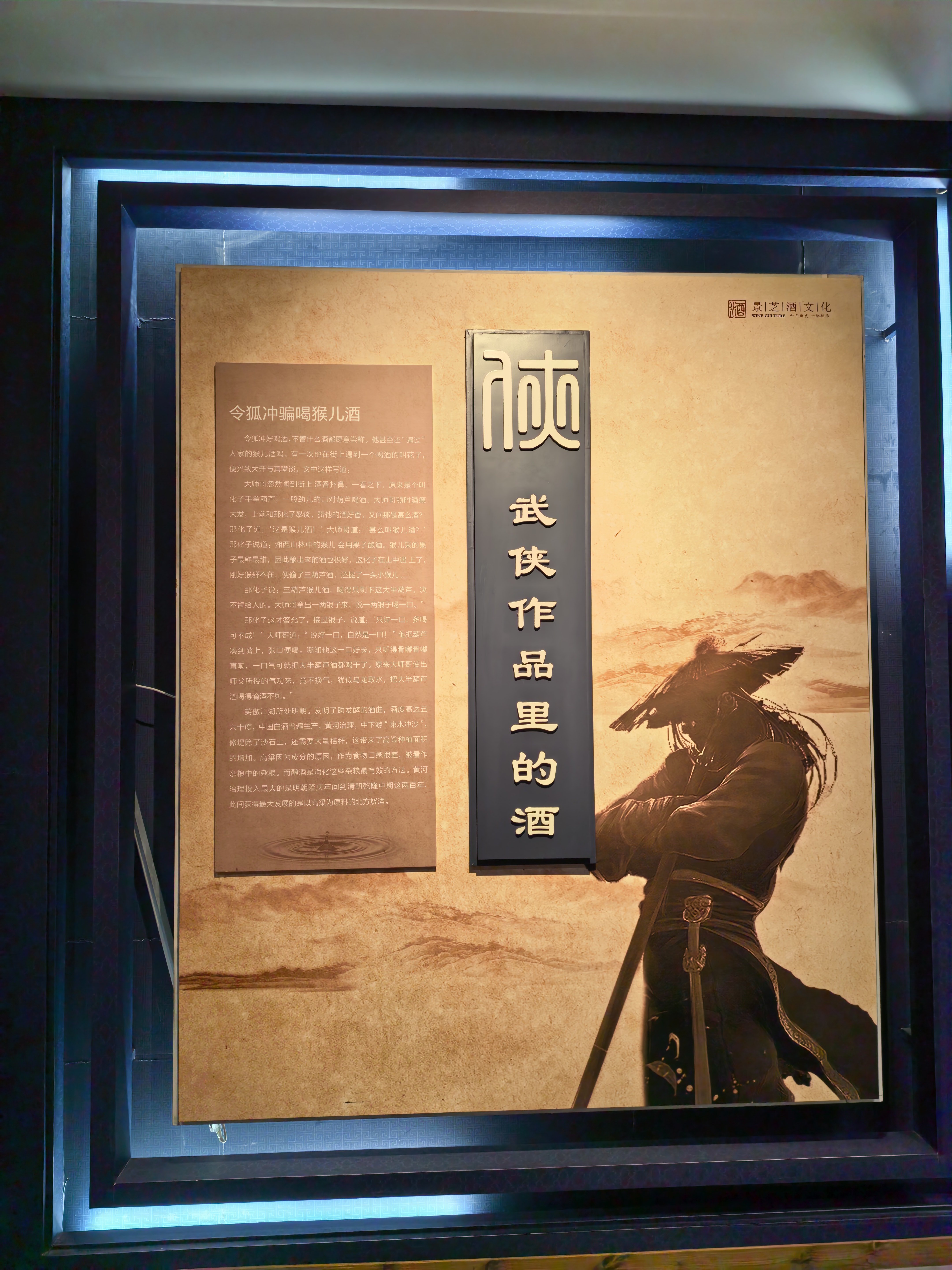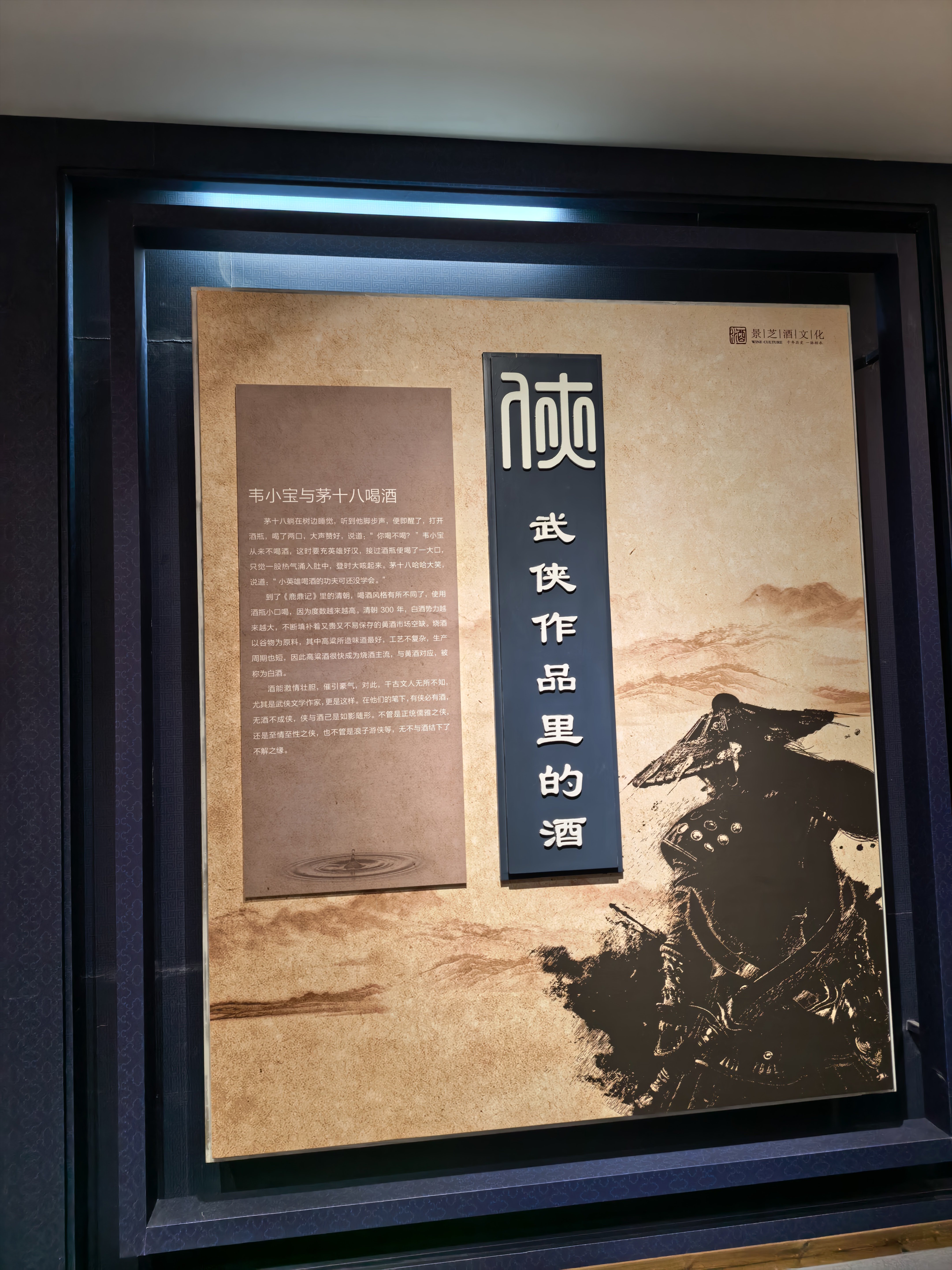 博览中心展示了金庸作品里三个关于酒的小故事,分别是乔峰段誉松鹤楼赛酒,令狐冲骗喝猴儿酒和韦小宝与茅十八喝酒这三个故事。