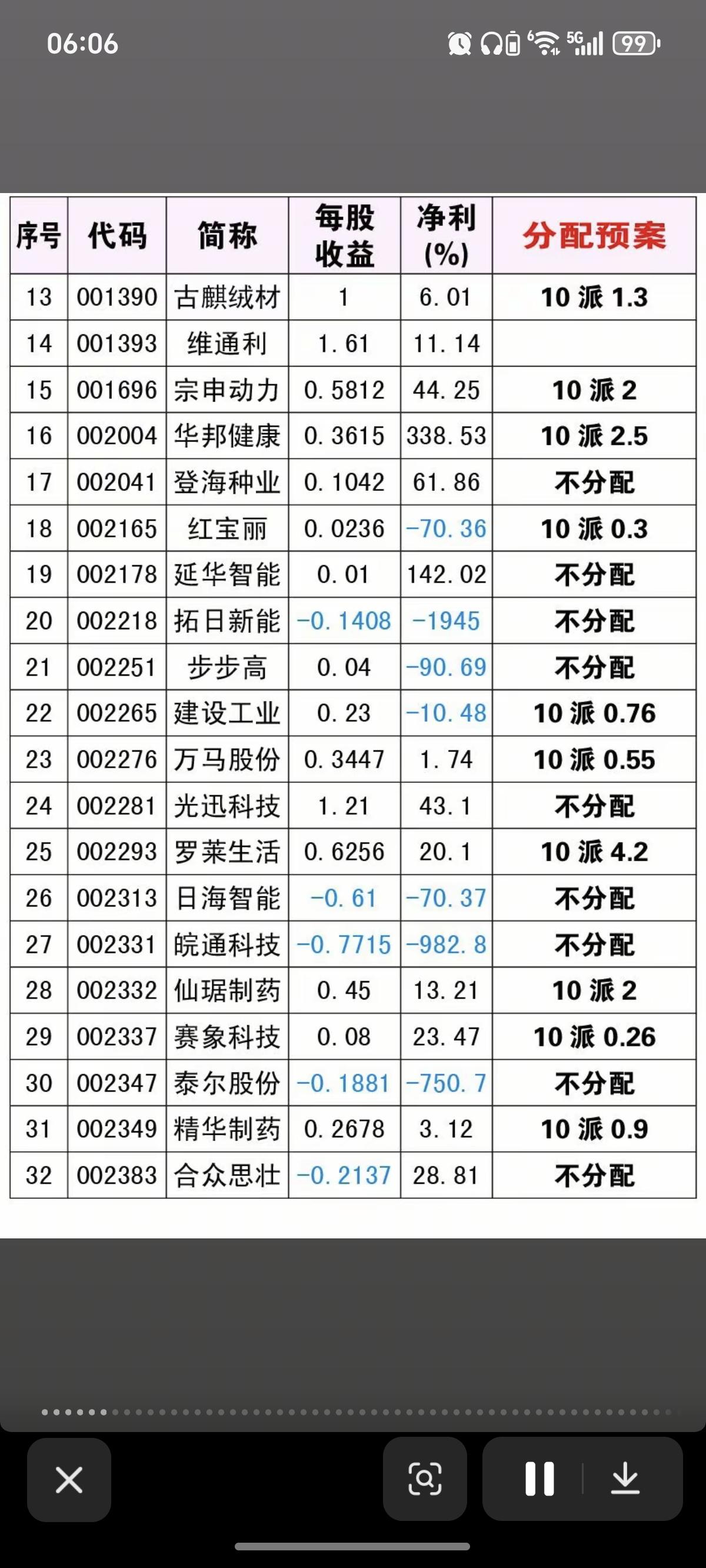 每股收益、净利润和分配方案