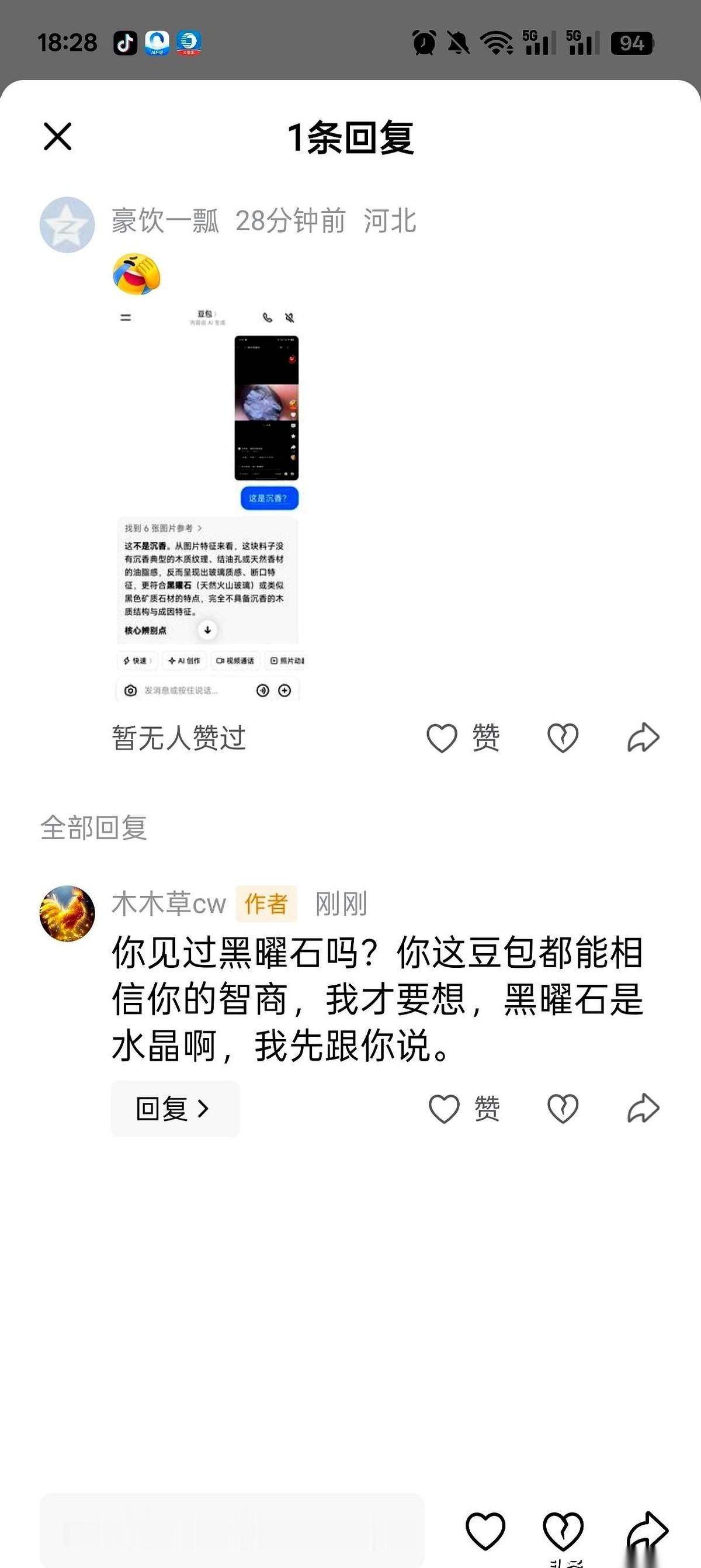 那是博主视频里的一块木头,而AI却把它认成了水晶。一个人对着屏幕截图、提问、狂喜,最后迫不及待地把这个跨越物种的“鉴定结论”发出来示众。他盯着屏幕等待回击的效果,却忘了最基本的常识:木头和石头,根本不是一个祖宗。