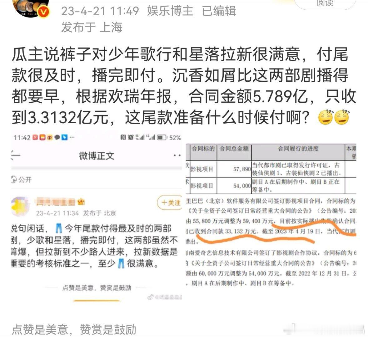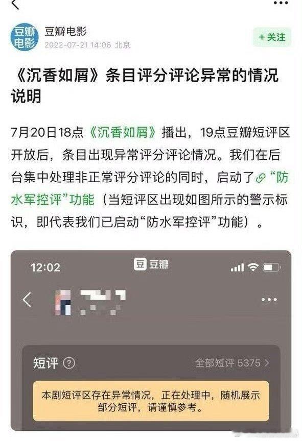 22年暑假档播出的剧是沉香如屑,当时热度不及同期播出的苍兰诀和星汉灿烂,优酷全年下载数据也不突出,尾款也没结,收视率也很一般,豆瓣打分出现异常。