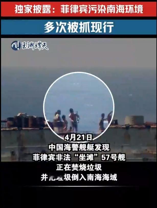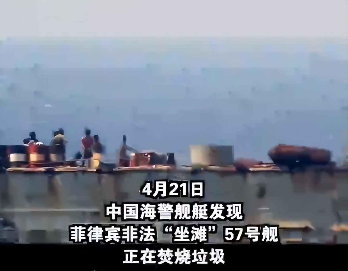 4月21号上午,中国海警船照常巡逻到仁爱礁,发现菲律宾那艘老旧船只“马德雷山”号的甲板冒出黑烟,这不是演习,是在实际焚烧物品,监控画面清晰记录下整个过程,塑料袋、橡胶管和破布条被堆在甲板上点燃,烧完的灰烬直接倒入海里,风吹过来,黑烟滚滚,气味刺鼻,这艘船从1999年起就停在这里没动过,多年来很少出现这类露天焚烧行为,国际公约明确规定,12海里范围内禁止倾倒塑料制品,也不能随意排放有毒废弃物,“马德雷山”号的行为已不止一次发生,2025年2月就有过类似事件,这次规模更大,持续时间也更长。