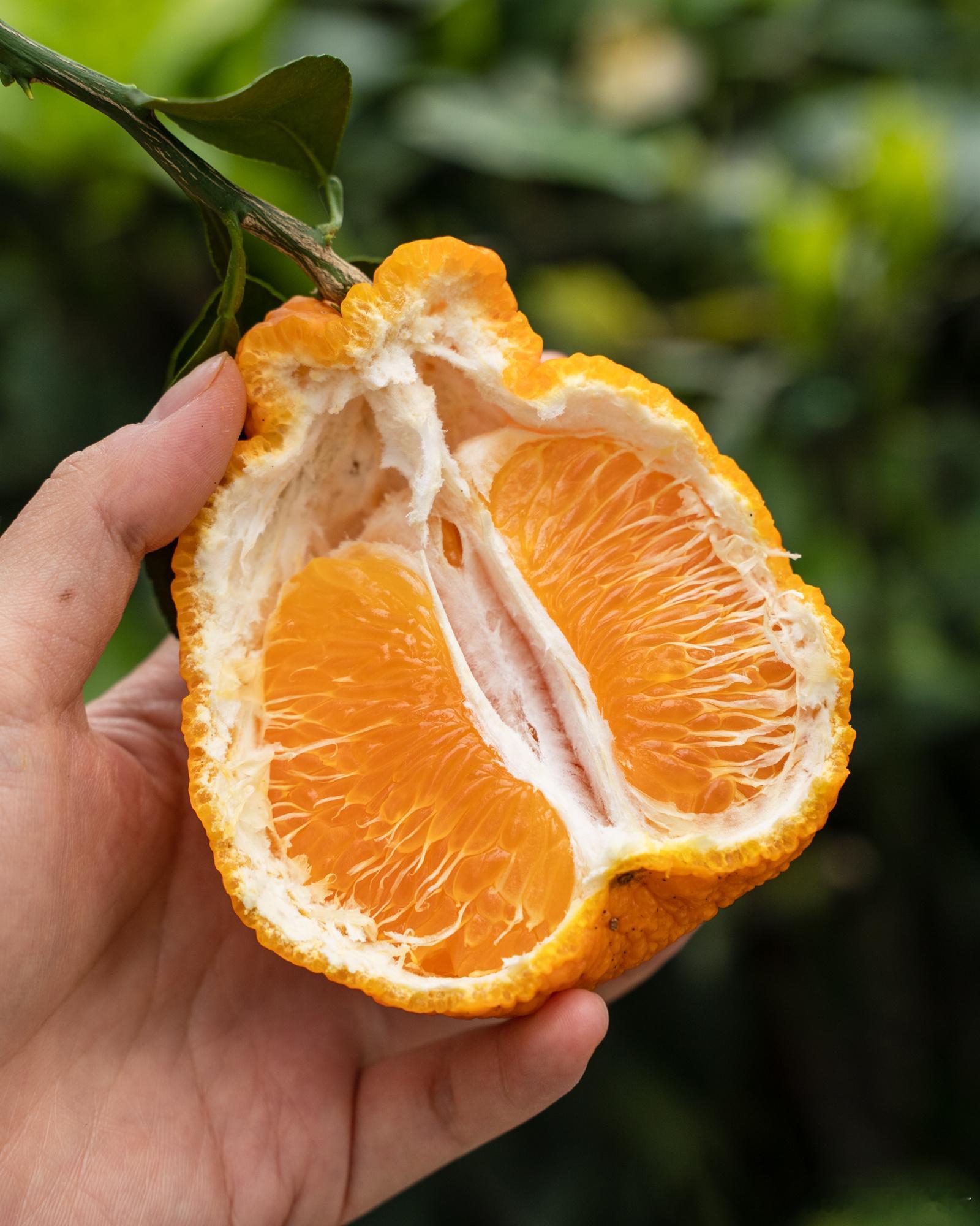 一直以来,不知火就不是纯甜柑橘,带着柑橘的果酸和脆脆口感。它作为水果界的反差萌代表——外表粗糙,内心却是酸甜脆嫩,也被叫做不知火、丑柑、丑八怪。这个品种是1972年由日本农水省园艺试验场,用“清见”和“中野3号”椪柑杂交培育出来的。2000年引入四川蒲江后,很快就成了当地的明星特产。