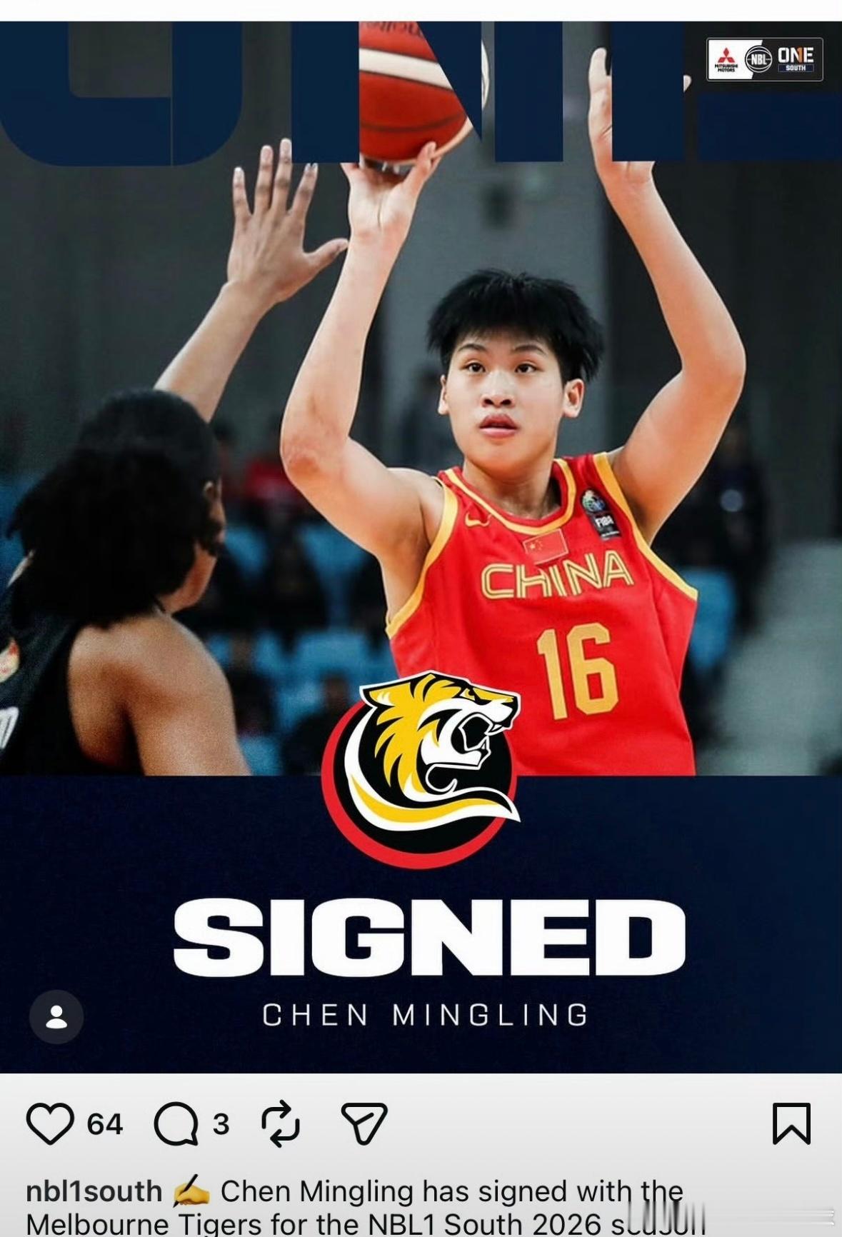 官宣!陈明伶加盟墨尔本老虎女篮,与杨舒予澳洲再聚首北京时间4月23日,澳大利亚NBL1联赛墨尔本老虎女篮官方宣布,中国女篮国手陈明伶正式加盟球队,将出战2026赛季NBL1南区联赛。她是广东女篮出来的内线好手,身高1米92,既能抢板护框,也能中投得分,国家队也打过不少国际比赛,实力没得说。更巧的是,之前杨舒予也官宣加盟了这支球队,这下俩老队友在澳洲又能并肩作战了!这俩人联手,估计在NBL1里都能横着走了。期待陈明伶在澳洲打出好表现,给咱们中国女篮长脸!也希望她和杨舒予在那边一切顺利,多拿胜利!陈明伶的留洋之旅,不仅是个人职业生涯的重要突破,也将为中国女篮球员开拓海外赛场提供了更多经验。希望以后会有越来越多的年轻球员走出去!中国女篮