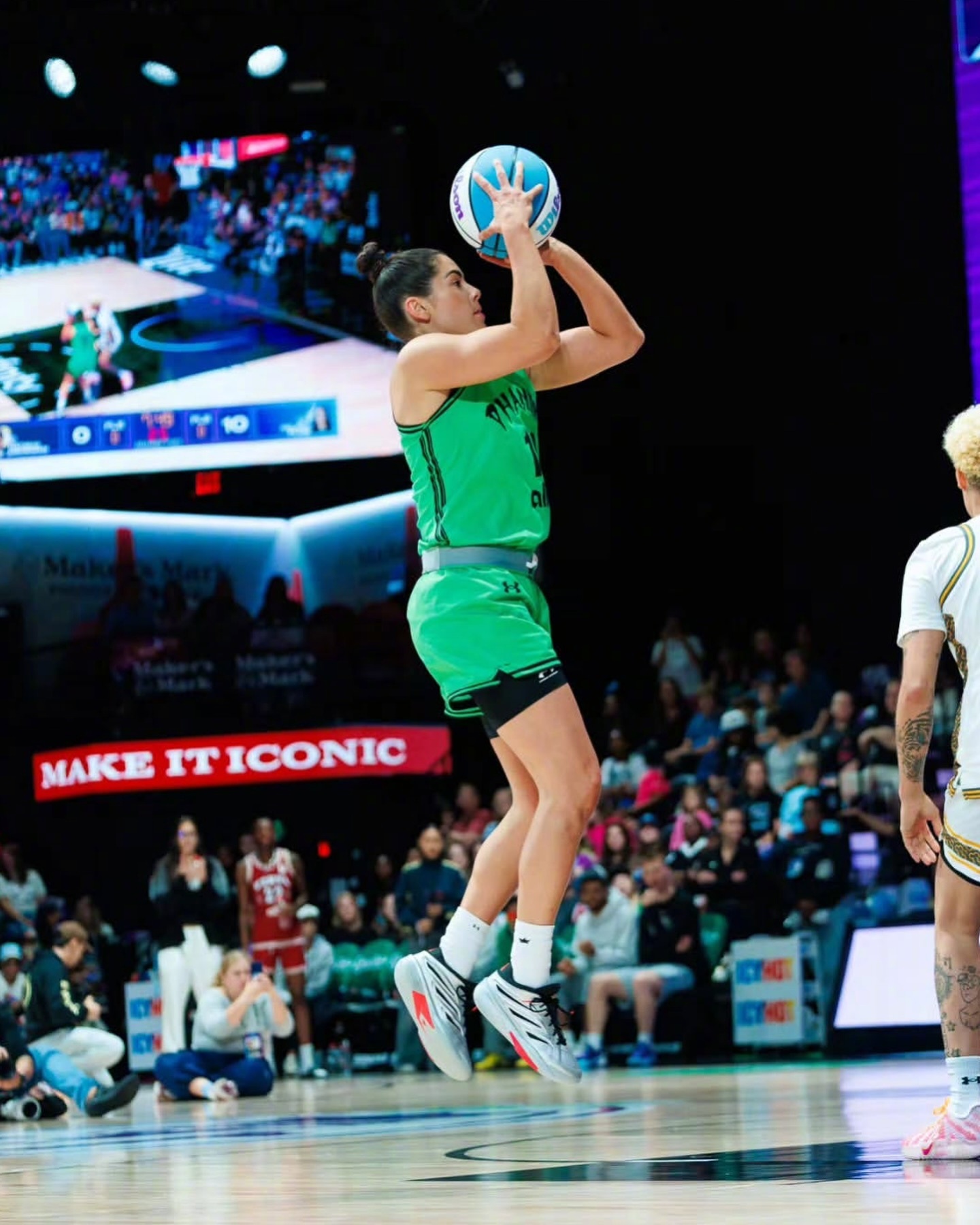 在此前的Unrivaled联赛还有美国队的比赛中,这期间几个月,她都没有穿着UA球鞋,而且UA还是Unrivaled联赛的球衣赞助商。