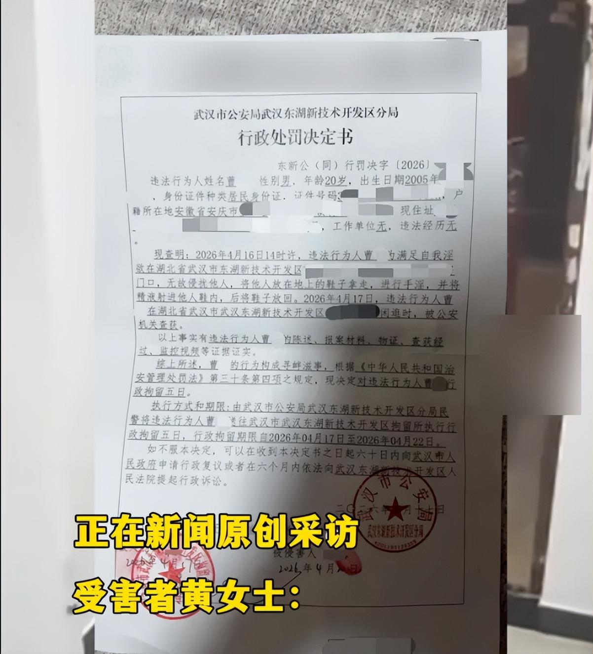 湖北武汉,黄女士准备出门,弯腰从门口拿起自己那双鞋。手一摸,里面湿湿的。她凑近看了一眼,那股味道和粘稠的质感,让她瞬间明白了什么,报警后,警方找到这名20岁男子,而他也因为自己的糊涂行为,被拘留了5天