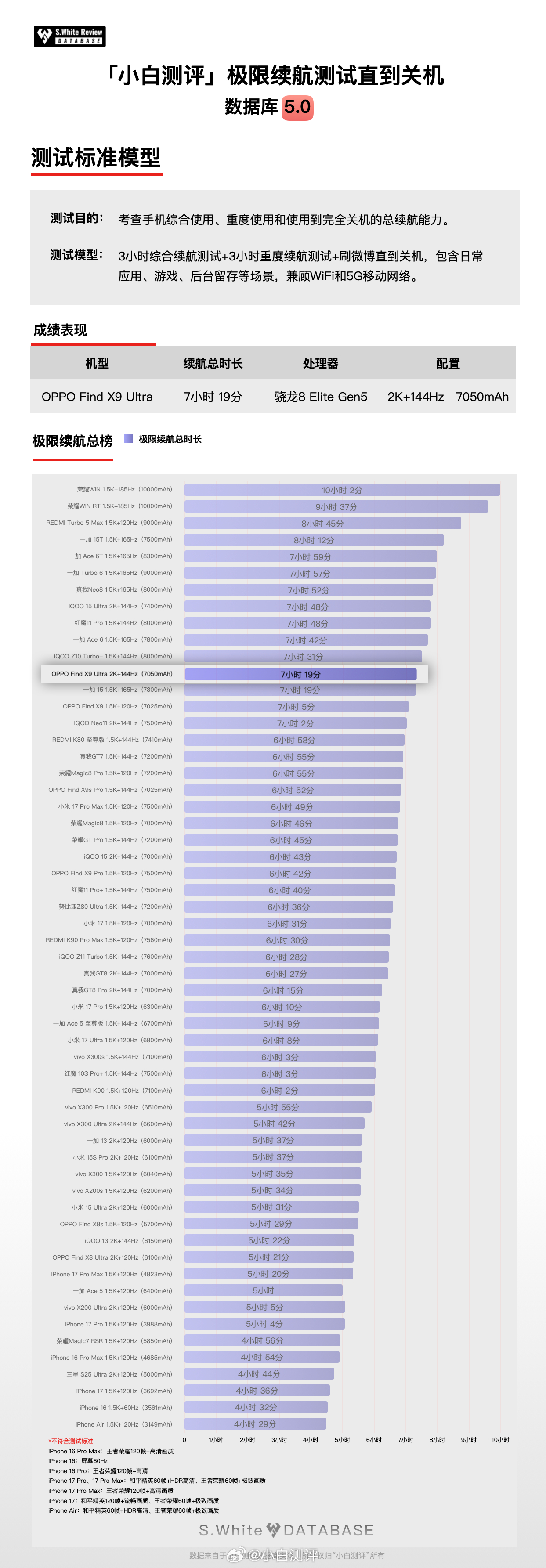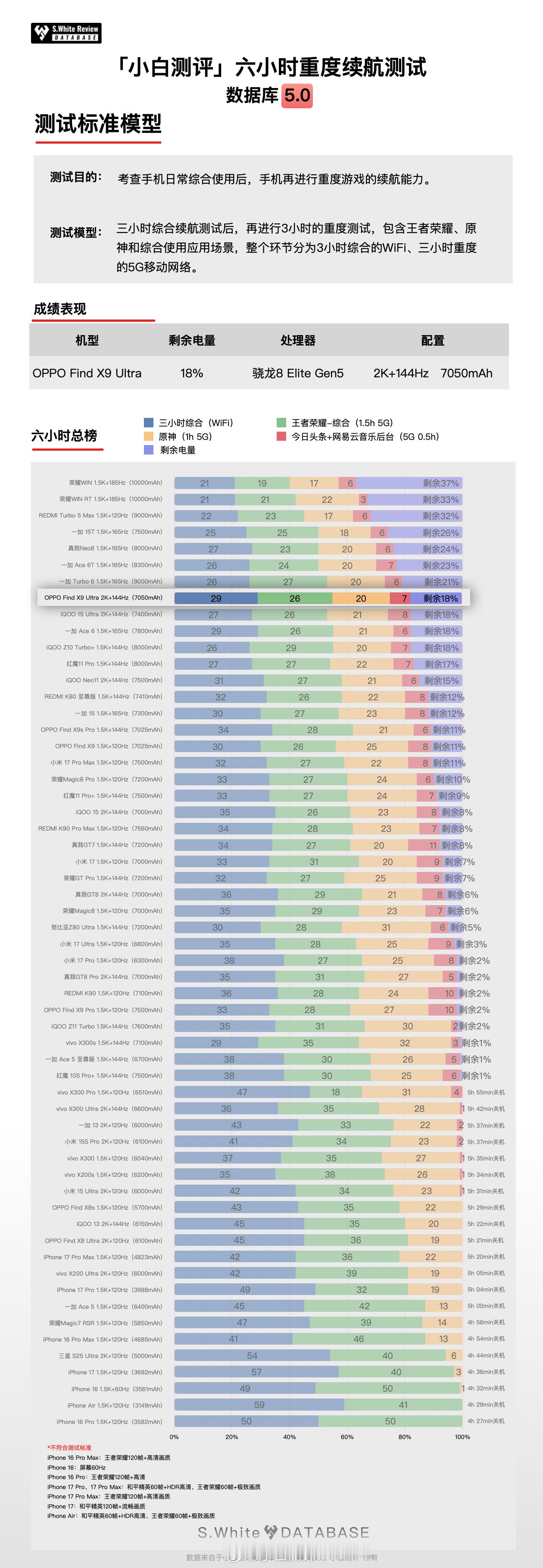 米OV三家的Ultra都发布了,你更喜欢谁?下面是数据库5.0实测的OPPO Find X9 Ultra续航和充电表现: