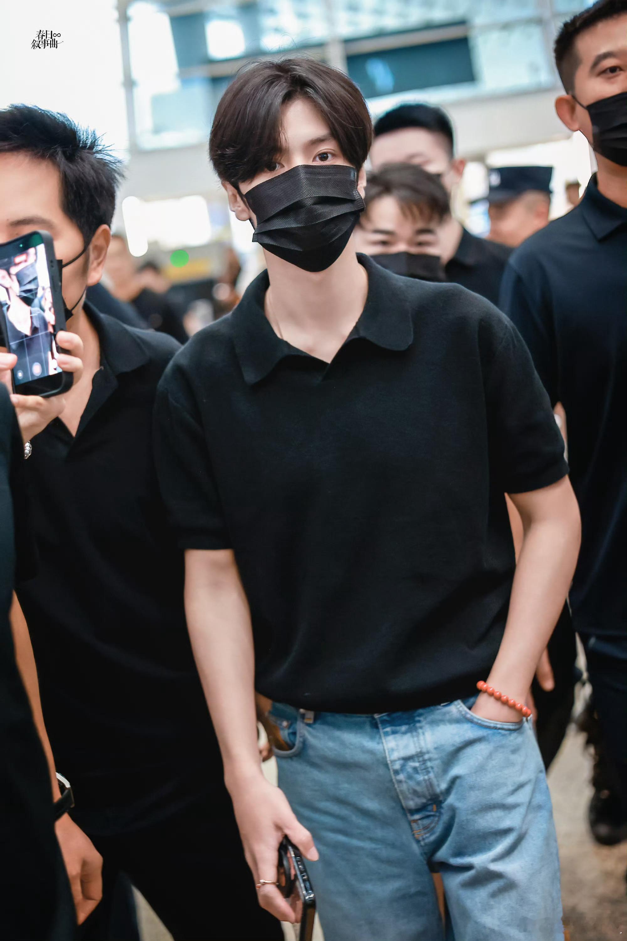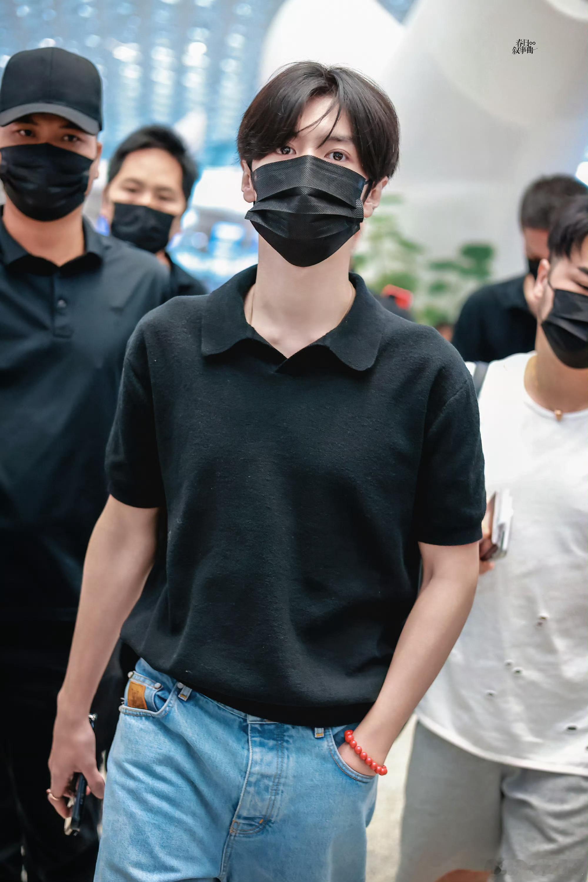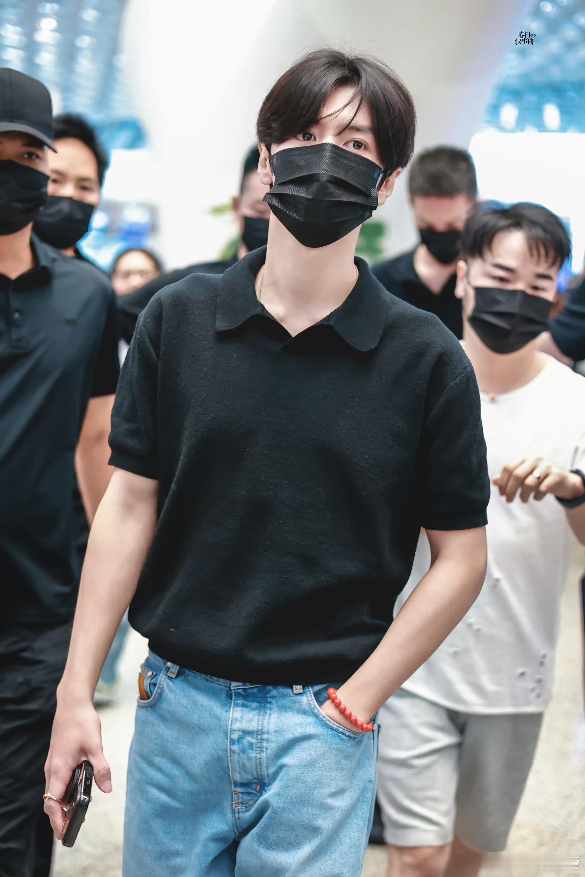 陈哲远出发泰国 深圳机场出发泰国,简约黑Polo衫搭配清爽造型,清冷帅气的欧巴感
