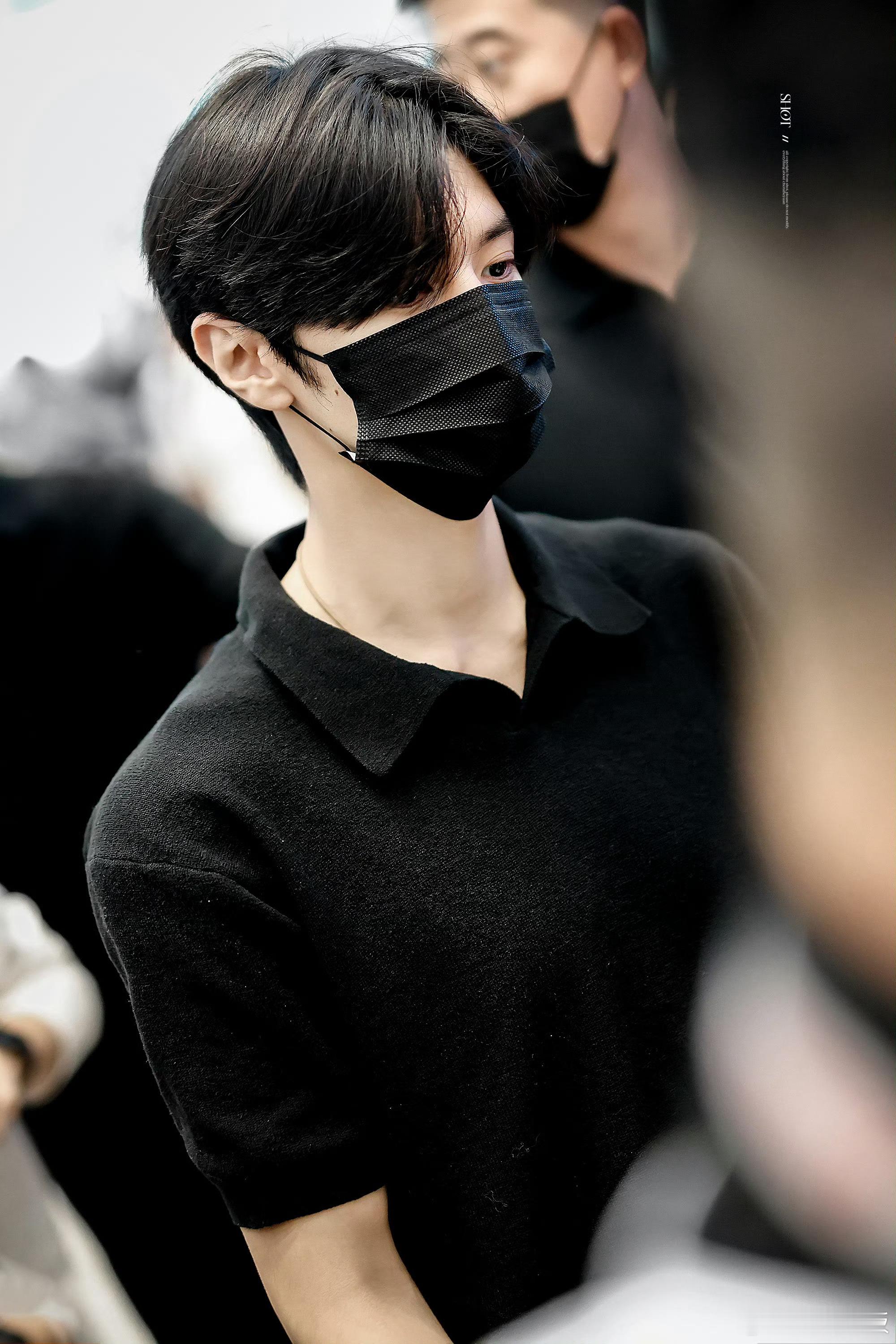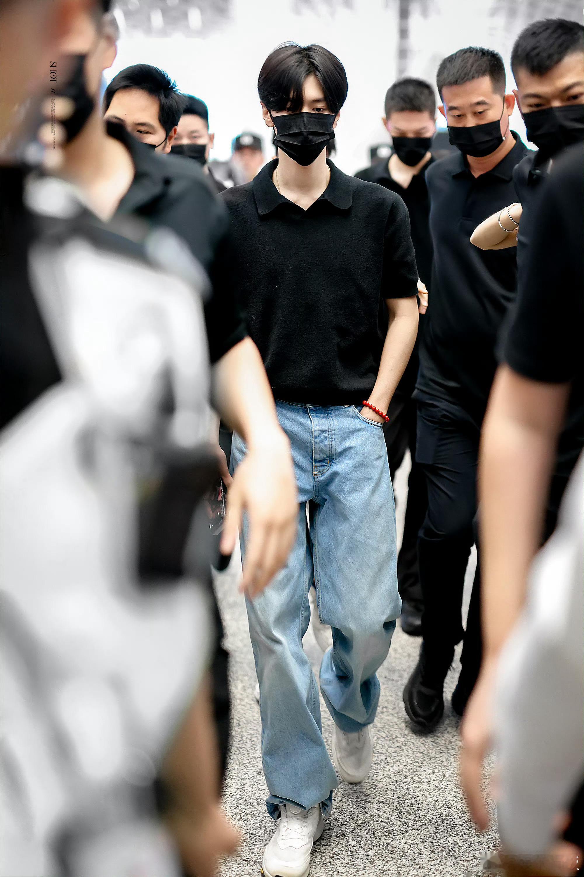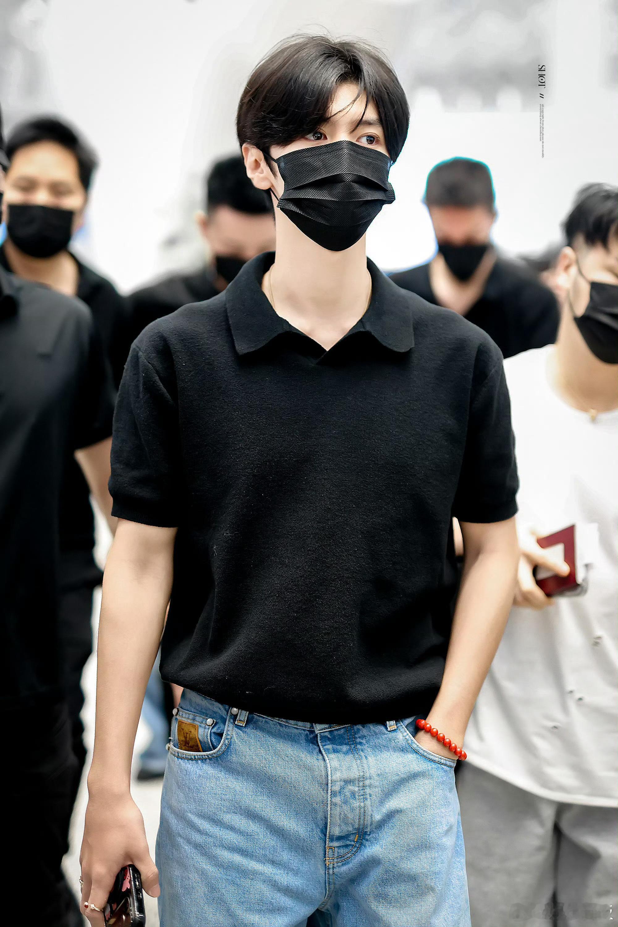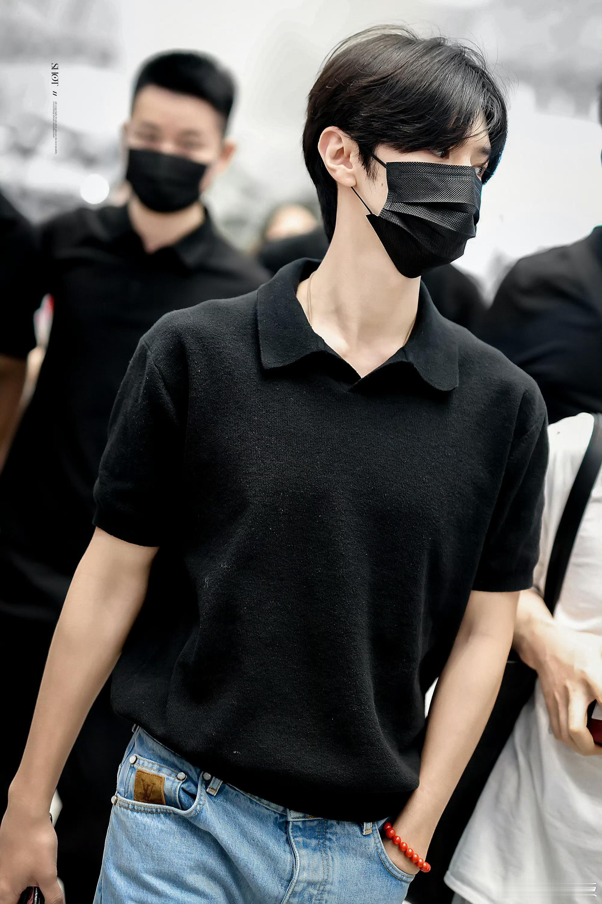 陈哲远出发泰国 深圳机场出发泰国,简约黑Polo衫搭配清爽造型,清冷帅气的欧巴感